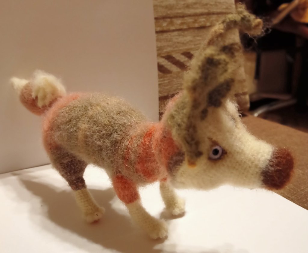 Собака -Некусака связана  из нити в два сложения Махер бабинный и акрил 100% , крючок 2
