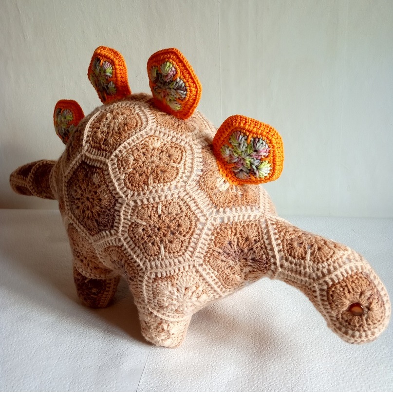 Стегозаврик- добрейший обитатель далёкого прошлого с нарядными пластинками на спине и самым мирным характером, любит погреться на солнышке и лакомиться сладкими ягодами)