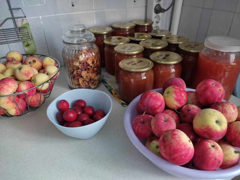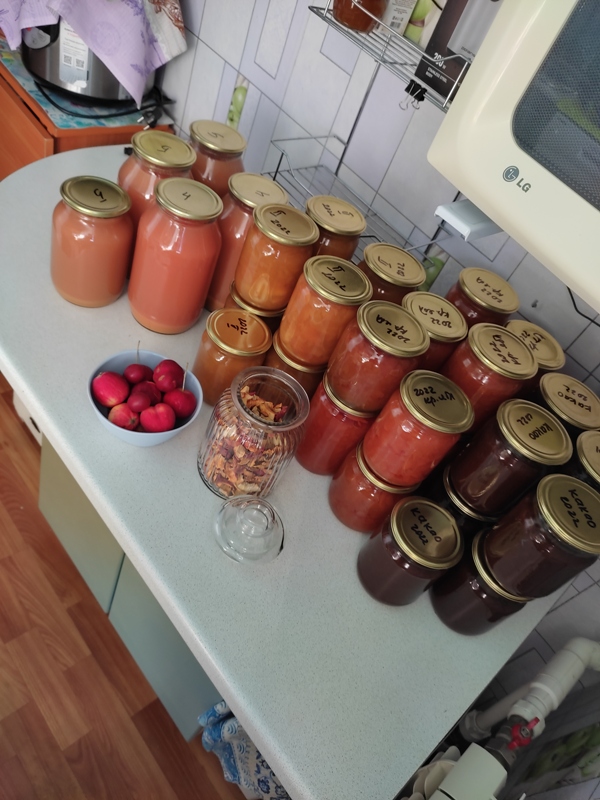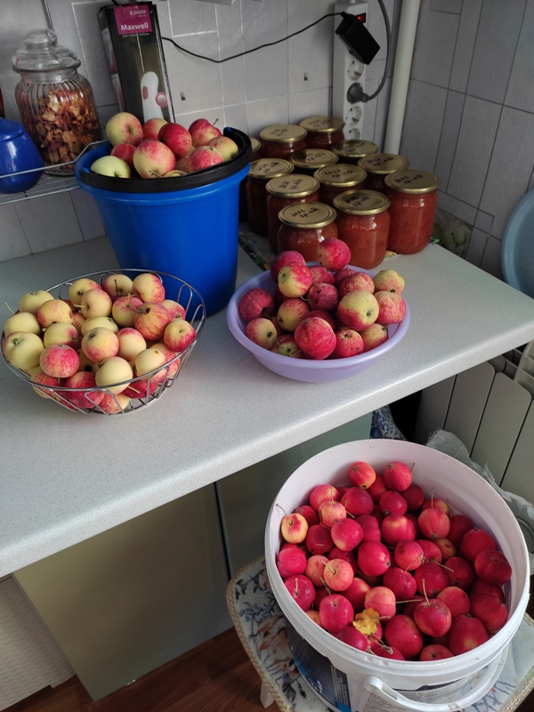 А теперь мой вариант – в 2022 г взяла 5 кг яблок, 2 банки сгущенки, 1 стакан сахара – получается 9 баночек по 0,5)