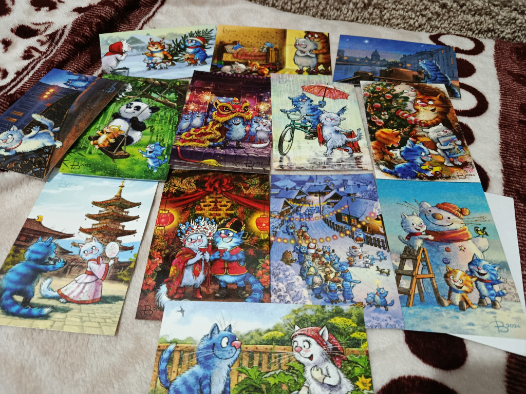 Котыыыыы! Синие!!! Мнооого!!!! Ааааа! Вот в таком красивом конверте со звериками из онлайна Полины.