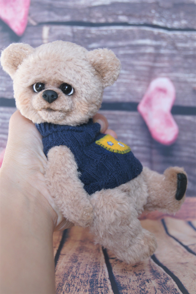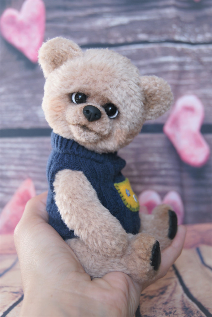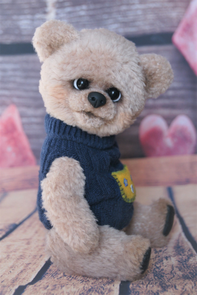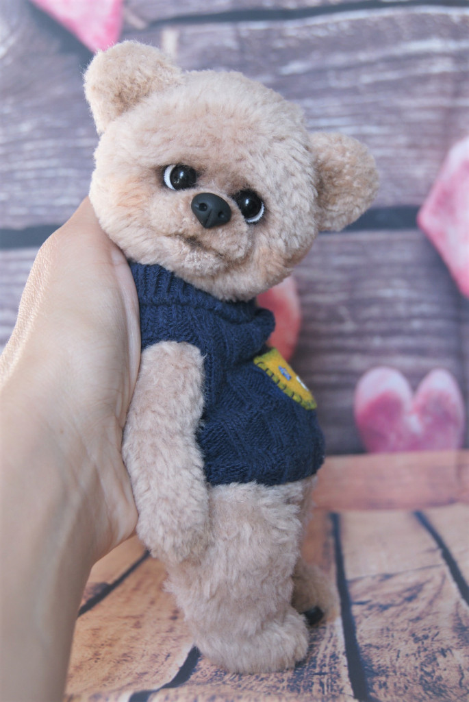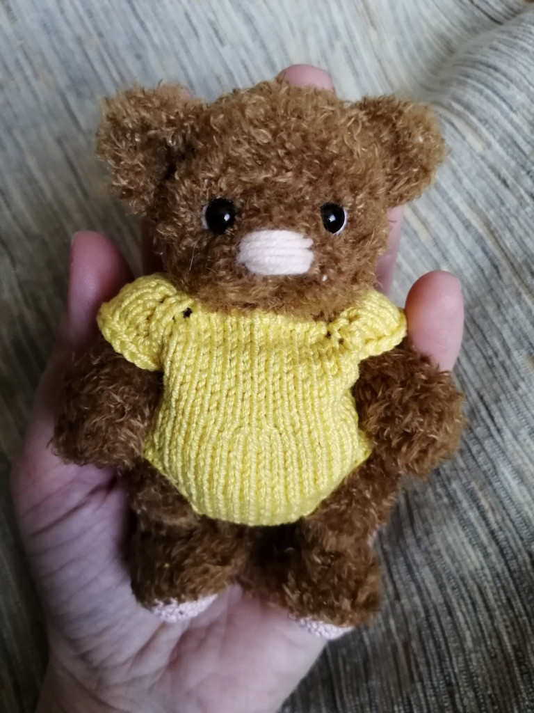 Тоффи. Результат тестирования мишки от Ани Будановой. Связан из минка. Ростиком 19 см. шплинтовое крепление, носик и пяточки из фимо. Анютик, спасибо! :kiss2:
