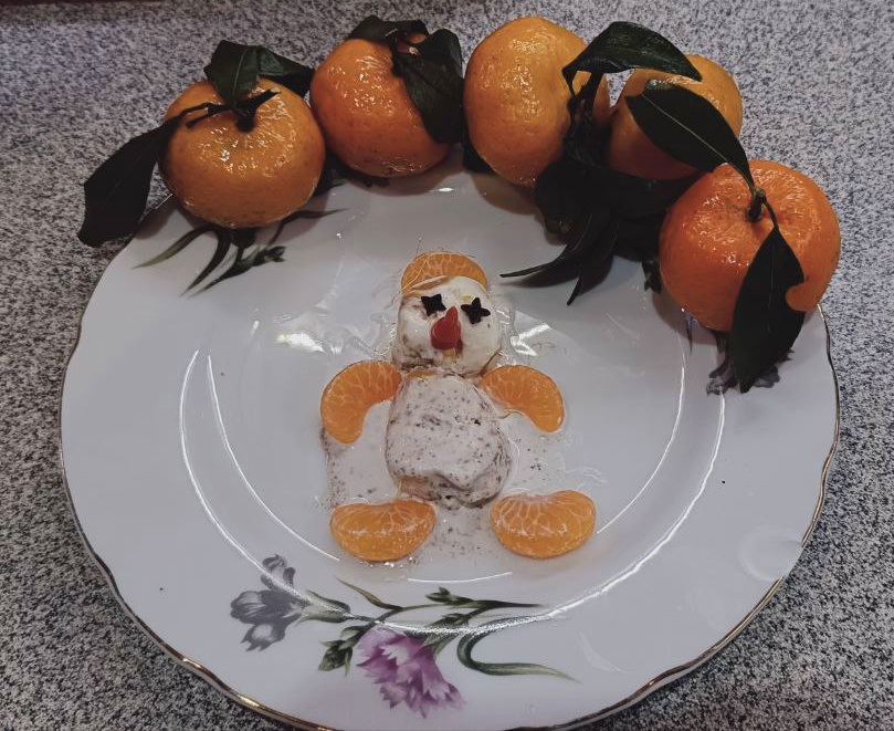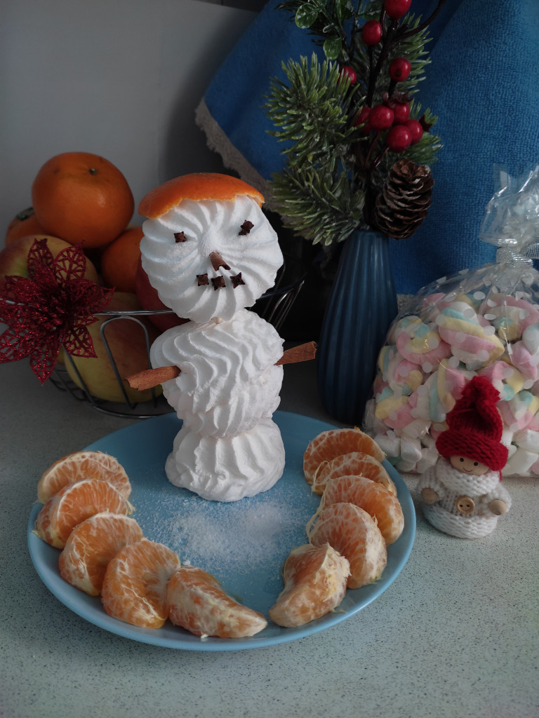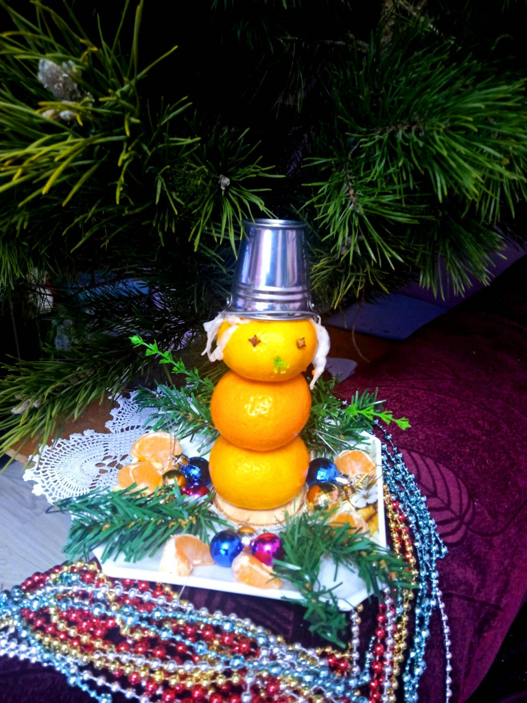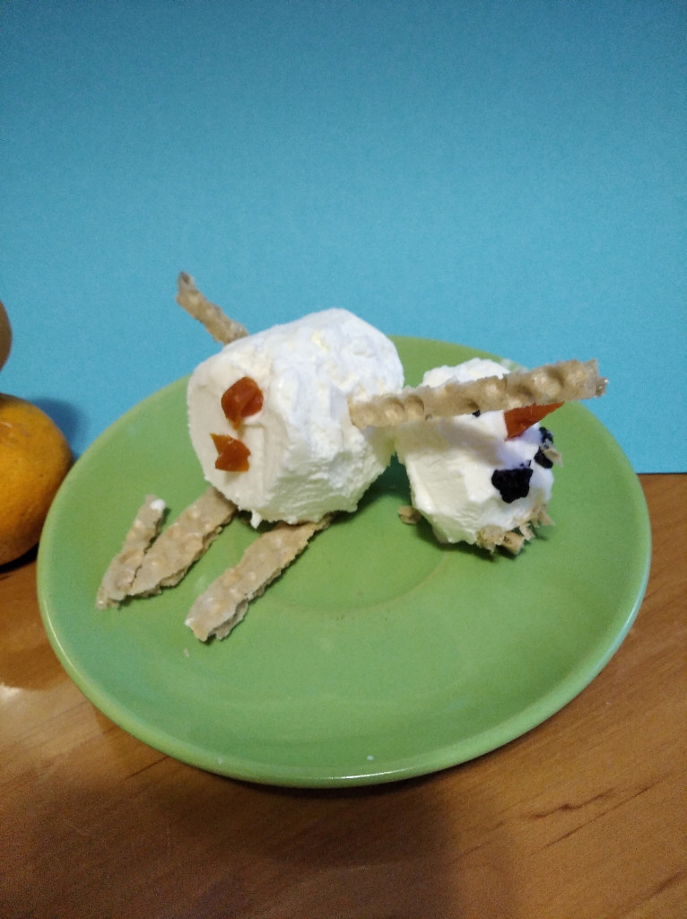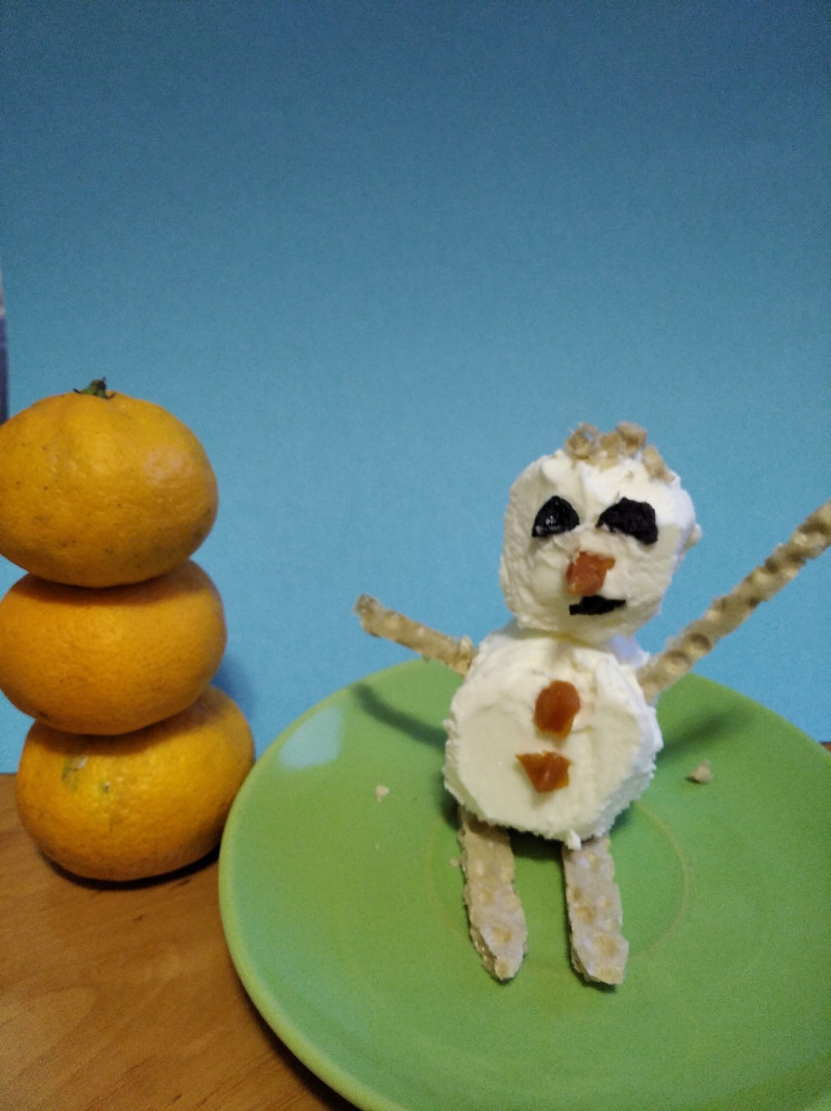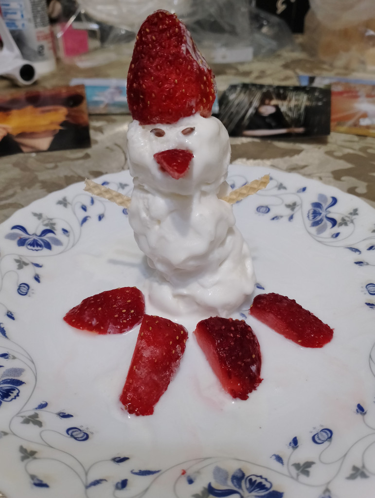 Сегодня пытаюсь прибрать квартиру, мало что получается, но снеговика с утра слепила, потом слопала с кофе. За мороженным уже не пошла, как говорится, я его слепила, из того, что было! Попыталась этот фильм ужасов немного обставить по новогоднему
