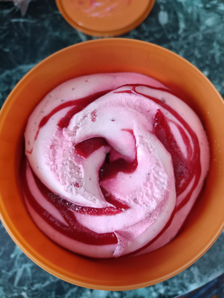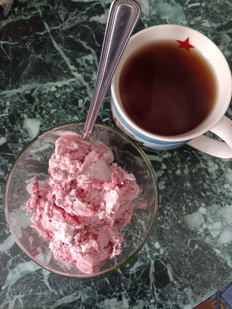 Вот и я с отчётом.Мороженое не покупаем от слова совсем,сама готовлю его,но в основном летом.На выручку пришёл мацони.Страшно-вкусно получилось