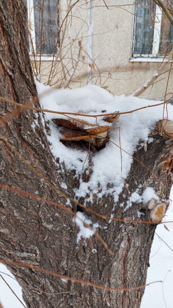 В общем, вот тебе пионерское задание —сходить, сдуть снег с тех грибов и показать заинтригованной публике, что это такое там выросло) Интересно..