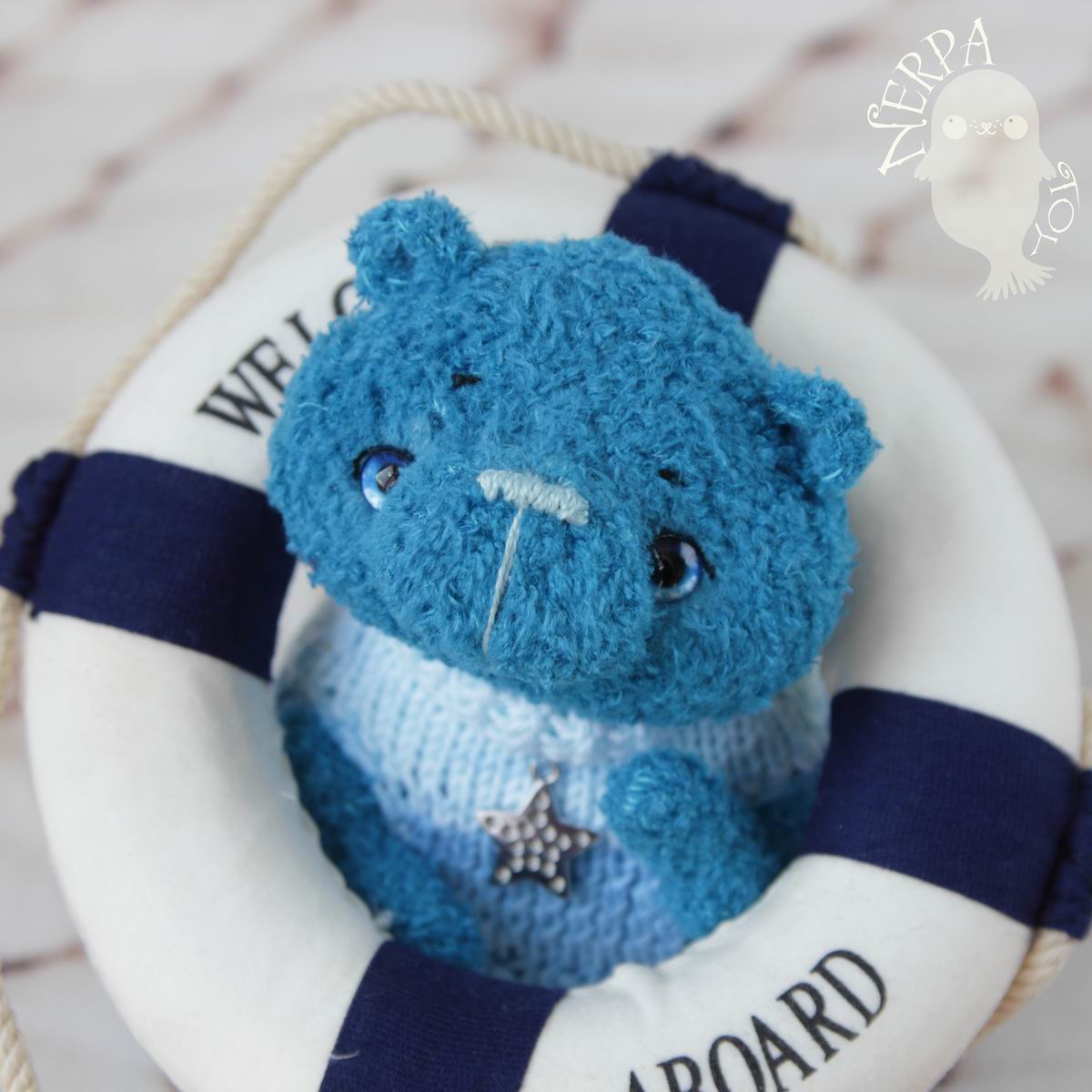 маленький, всего 7 см, связан из тонкой бобинки китайской + кидмохер ализе.