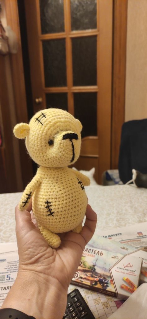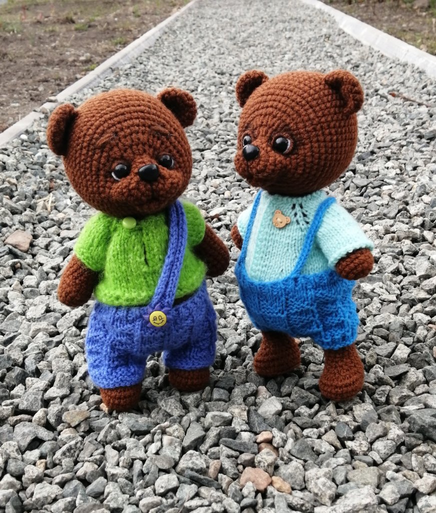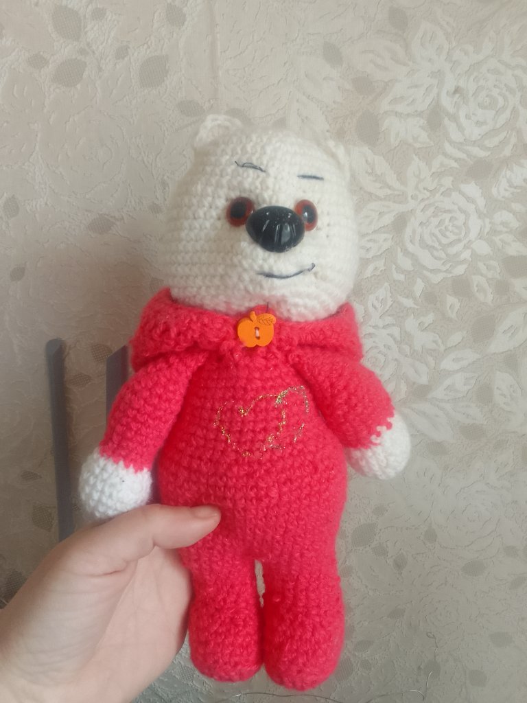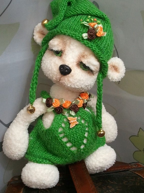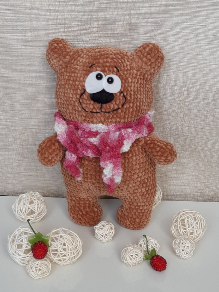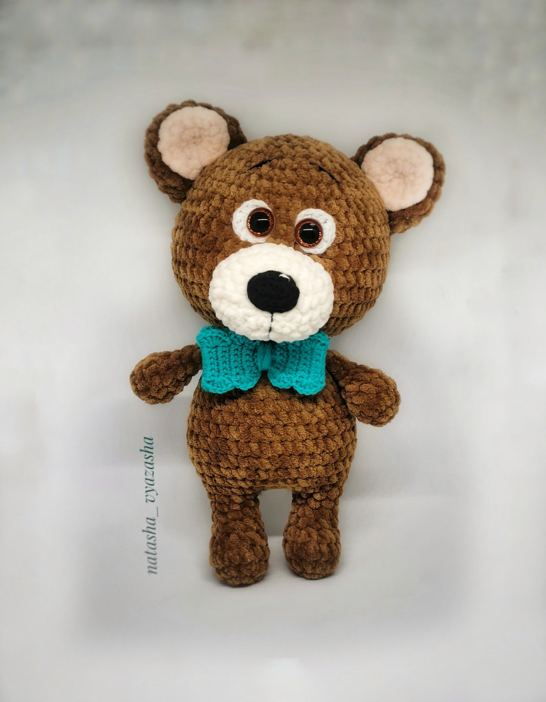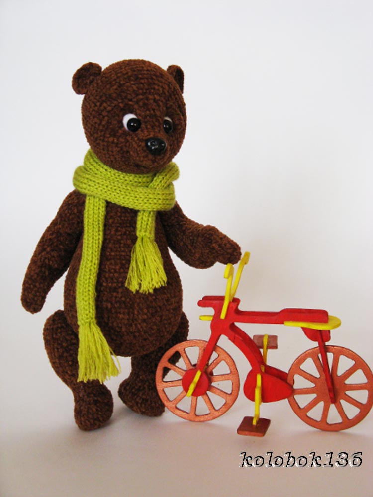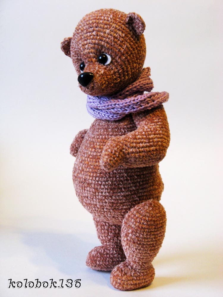 Эта мишуля связана из софти. Все лапы и голова на шплинтовом крепление. Голова качается. Чей мк к сожалению не помню. Если кто-то узнал напишите пожалуйста, для того чтобы отметить автора.