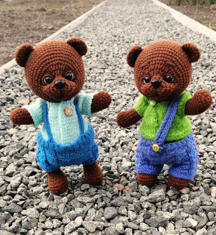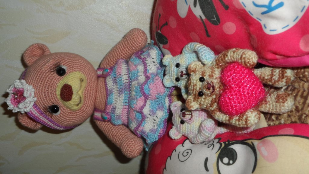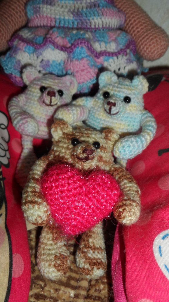 Ещё немножко мишек - по МК не помню чьему, найденному однажды, но очень мне понравились эти малыши, связались несколько разных цветов. У автора зелёный )
