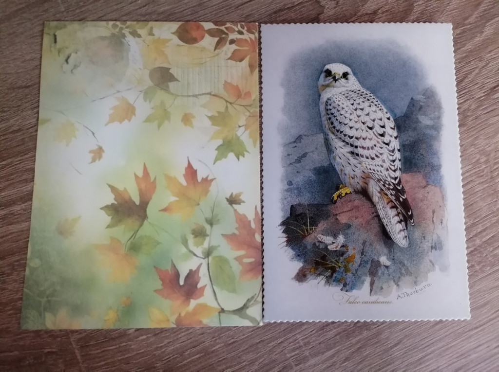 От Оли @lelyoka72 пейзажный обмен! И две чистенькие открытки ужасно уютные осенне и весенне). А еще листик красивой бумаги и милейшие зверики