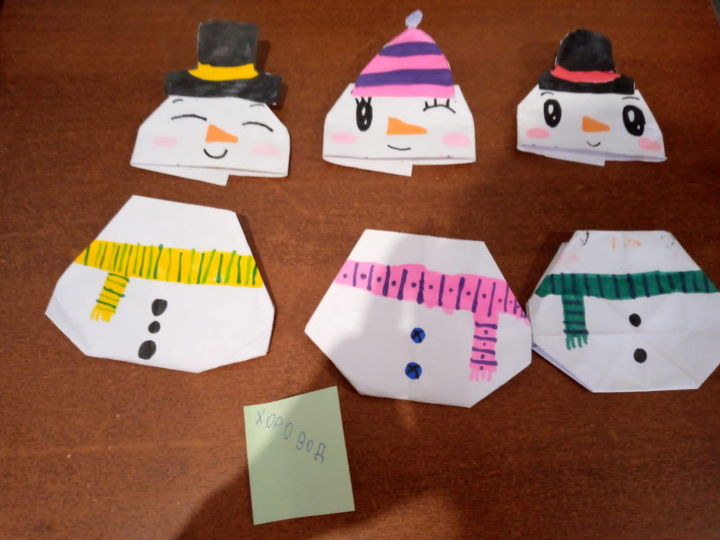 Привет. Вот так задание, я из бумаги только самолетик и лодочку могу сделать. Вот взрослая тетя, сижу и изучаю искусство оригами. Цветной бумаги нет, поэтому в ход пошли карандаши, но видно плохо. Вот что вышло - дед мороз и елка.