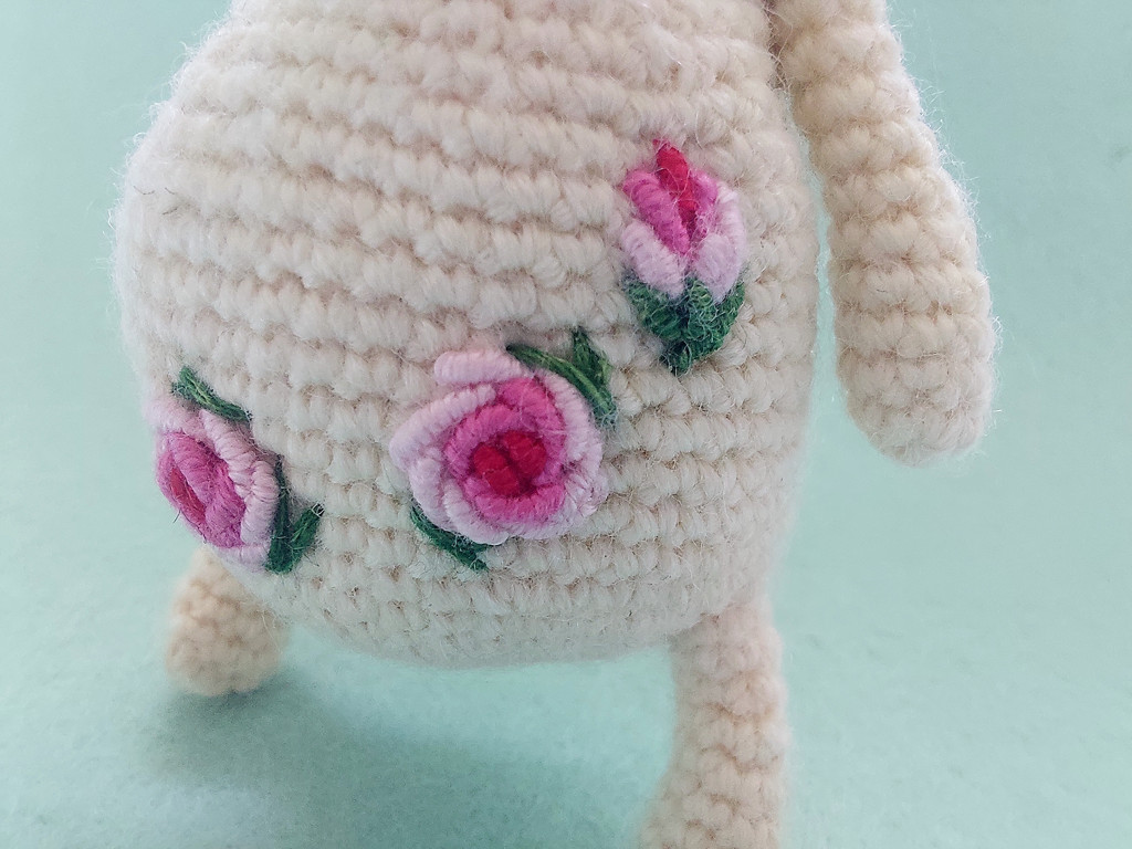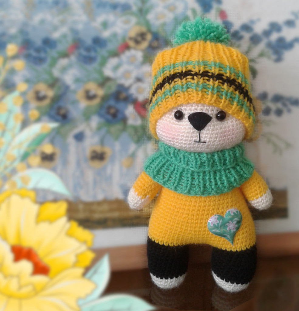 Мишка Лютик по МК Светланы Перцевой. Рост 10см, стоит с опорой. Без каркаса( а надо было). Цветочки вышиты.