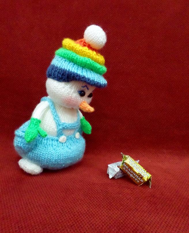 Вязала снеговика в подарок коллеге на Новый год по МК Анны Загривной.