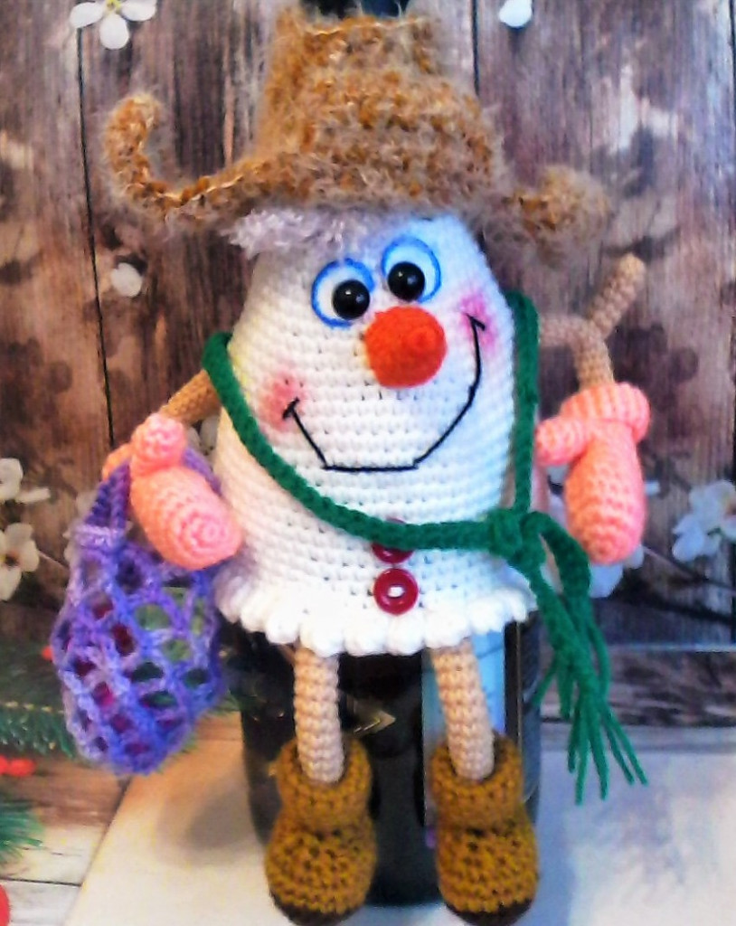 Снеговик, чехол на бутылку по МК Елены Лукмановой.