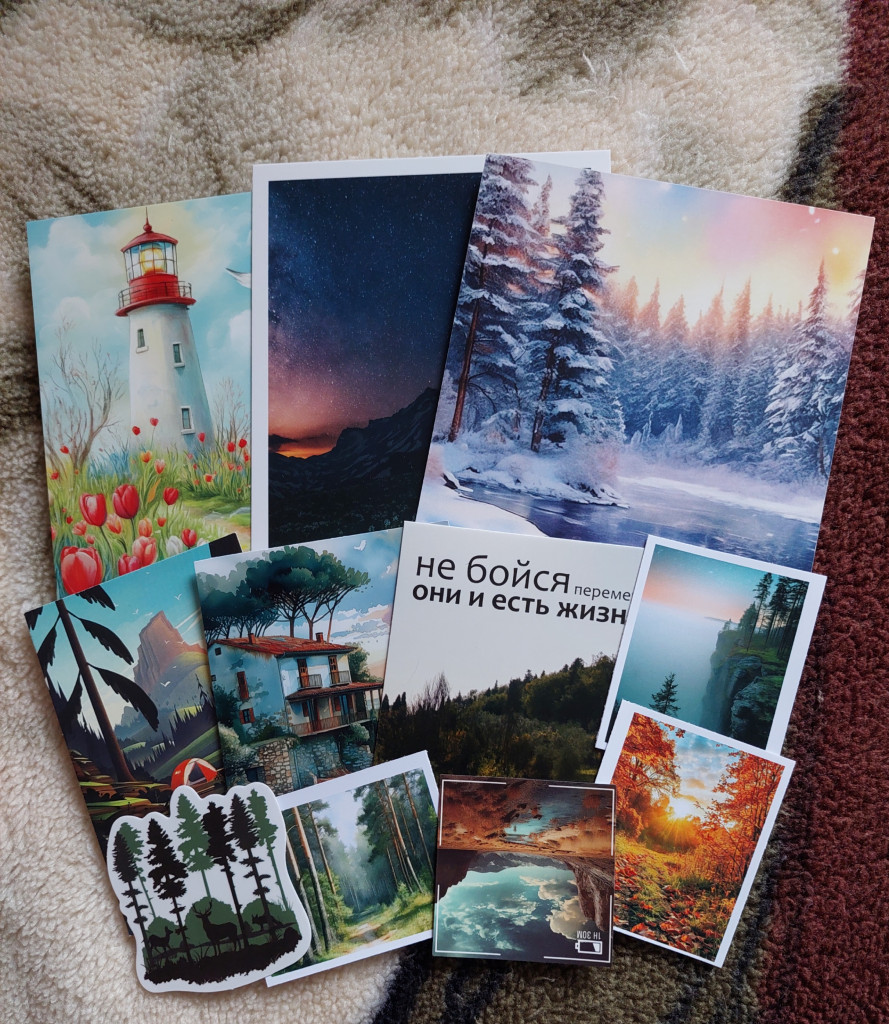 От Жанны @nisana красивые пейзажи с замечательными оборотами И много подарочков: открыточек, украшалочек. От Наташи @totoshka красивый пейзаж в горах. подарочные открытки, открытки-малютки, наклеечки Девочки, спасибо большое!