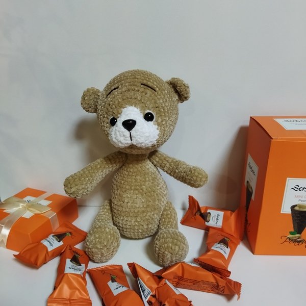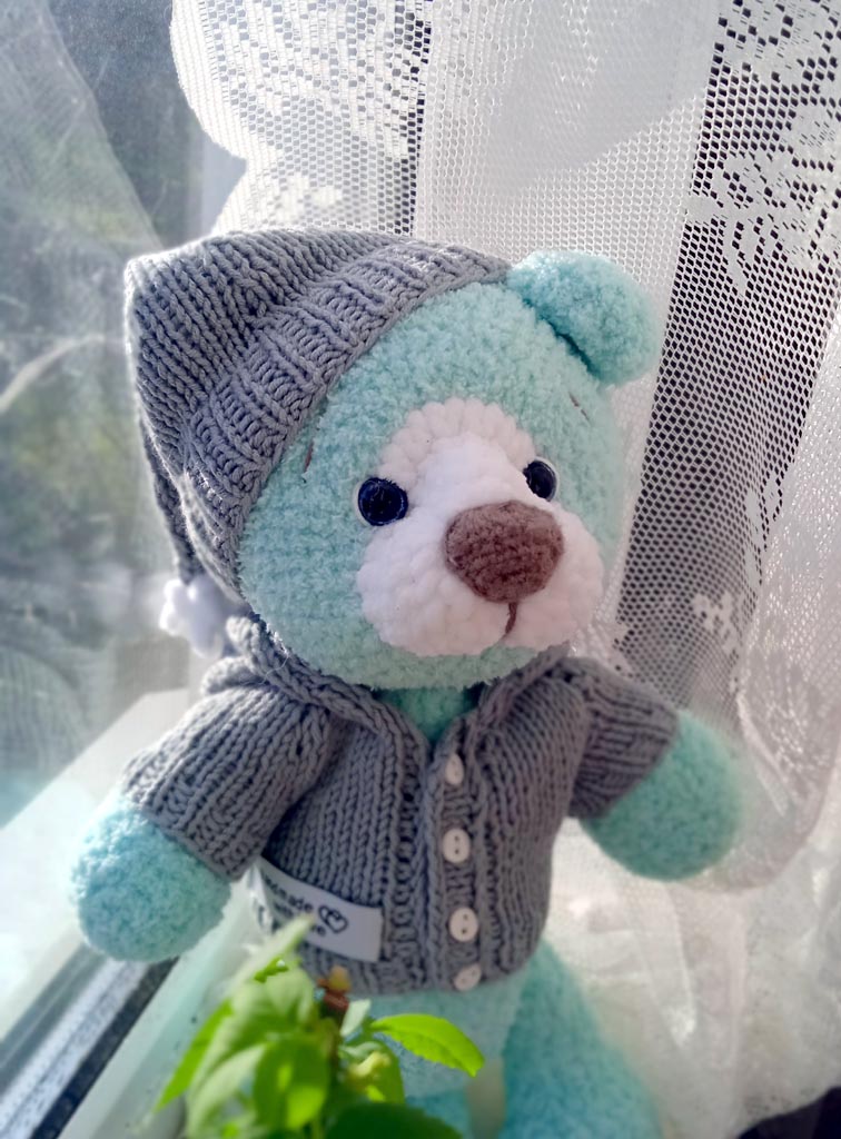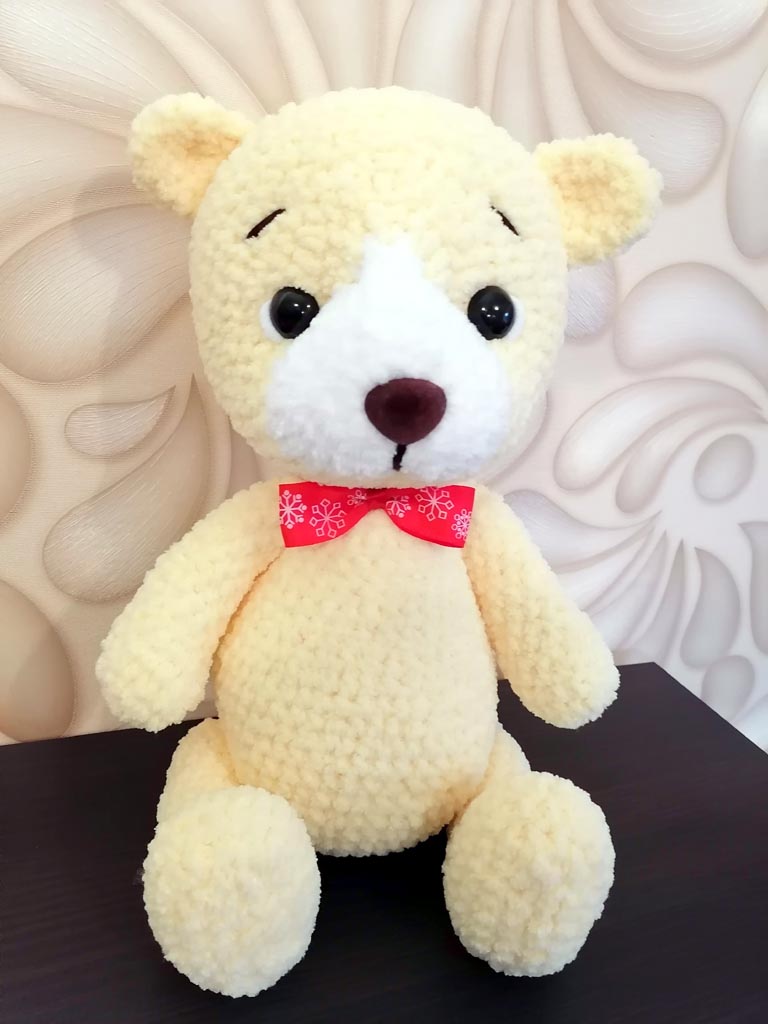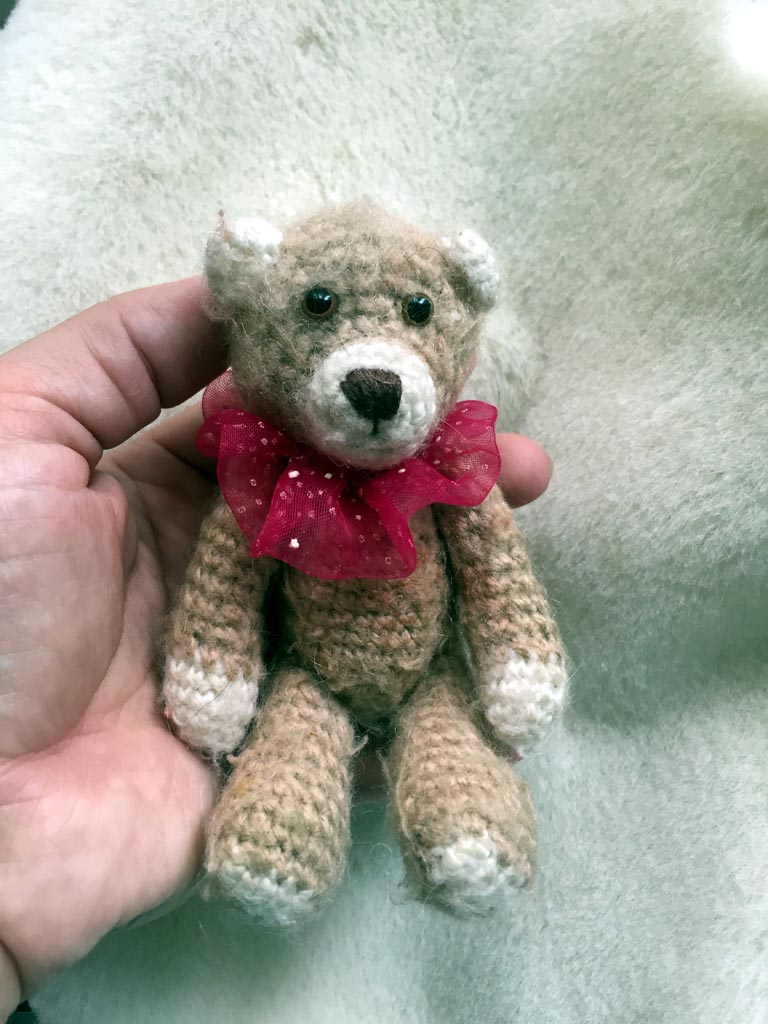 А я хочу вас познакомить с моим самым первым вязанным мишкой, который был связан 10 лет назад