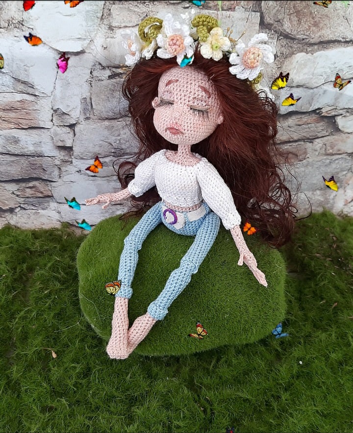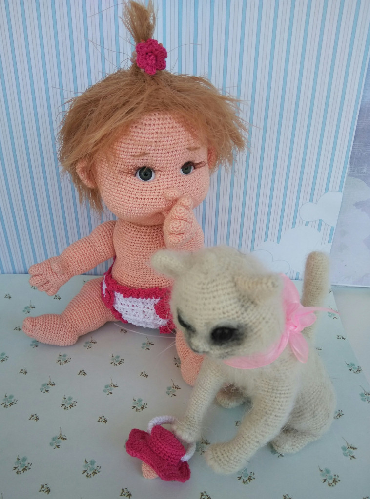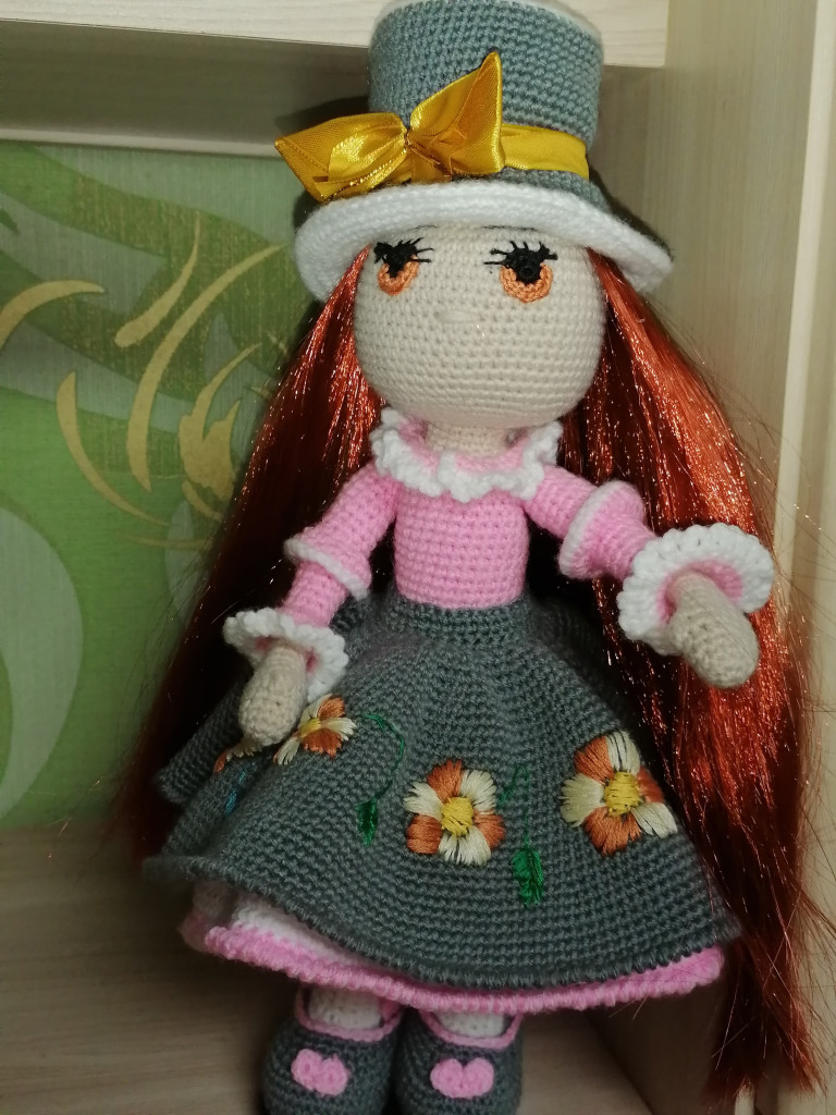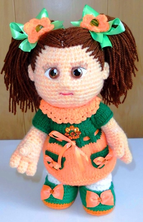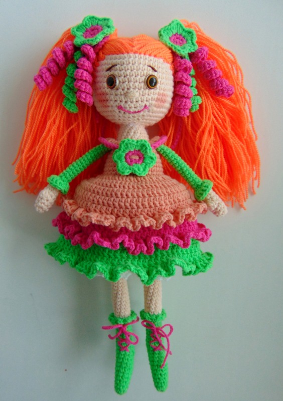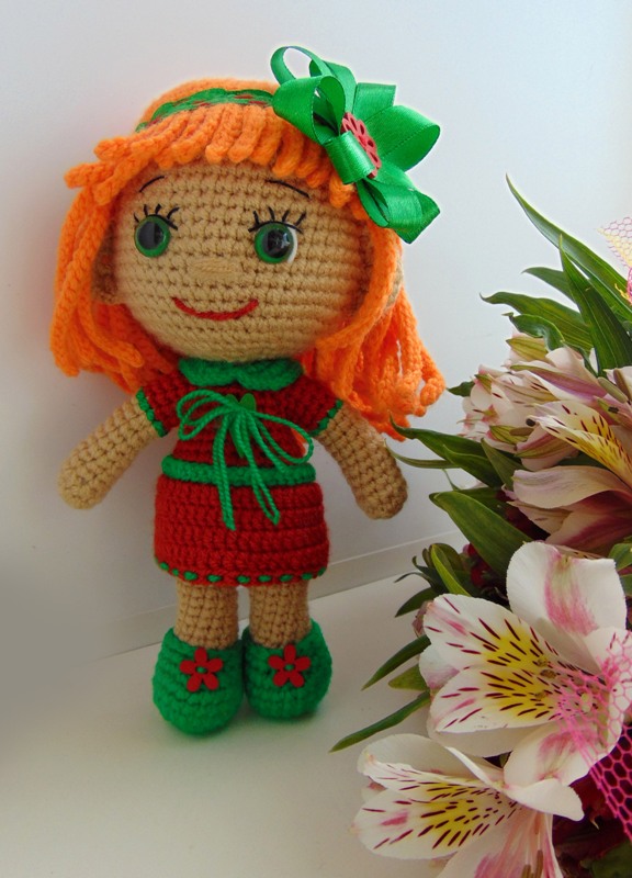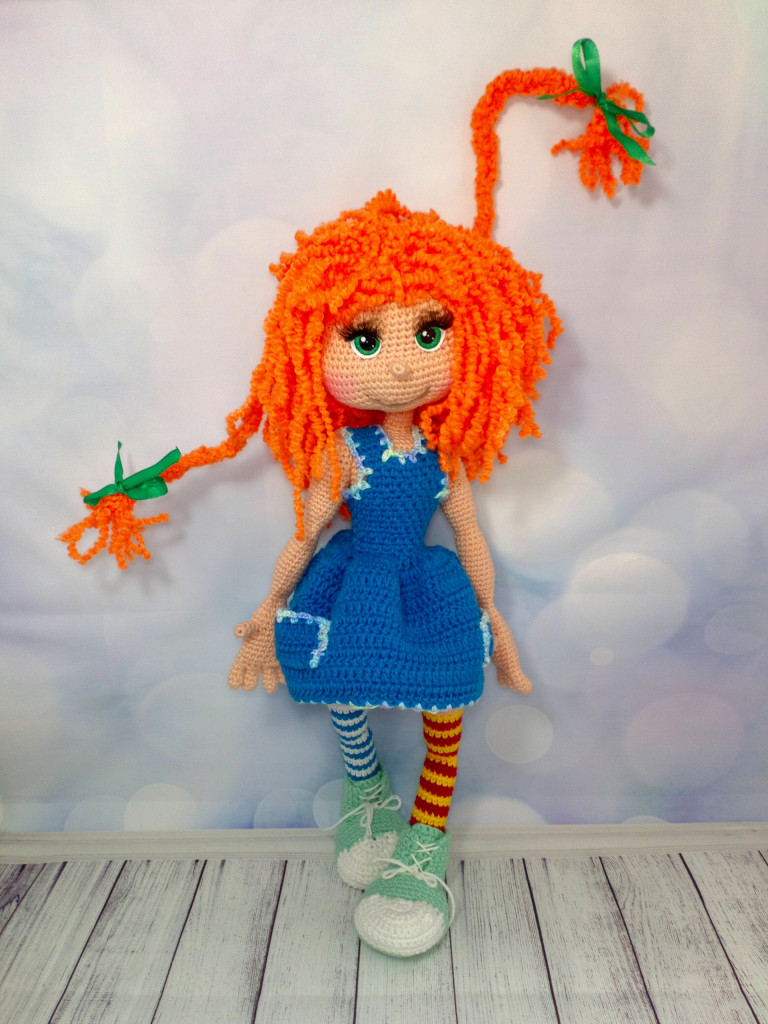 У меня связалась озорная девчушка Пеппи Длинный Чулок. МК Марии Сосковой, глазки нарисованы акрилом на ткани по МК Танечки Анпиловой "Эльфия". Связана из Газзал бэби Коттон, крючок 1,75. Волосы - пряжа каракуль стрейч.