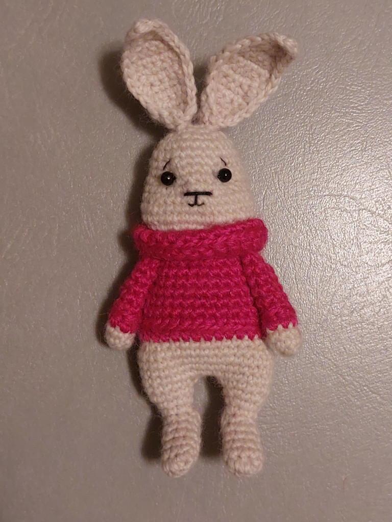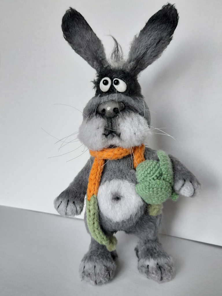 Этого зайчика связал мой сын, а я пока только в процессе. Немного не в тему, темы "зайцы" не нашла