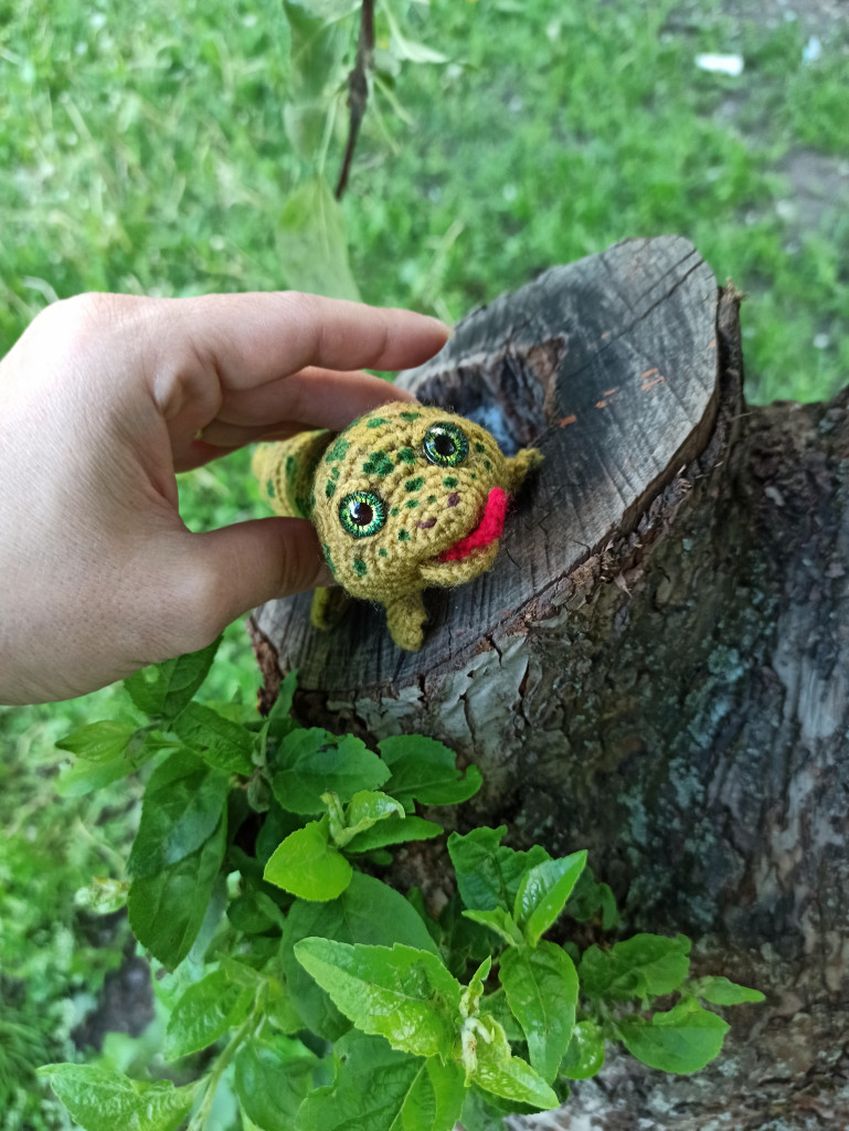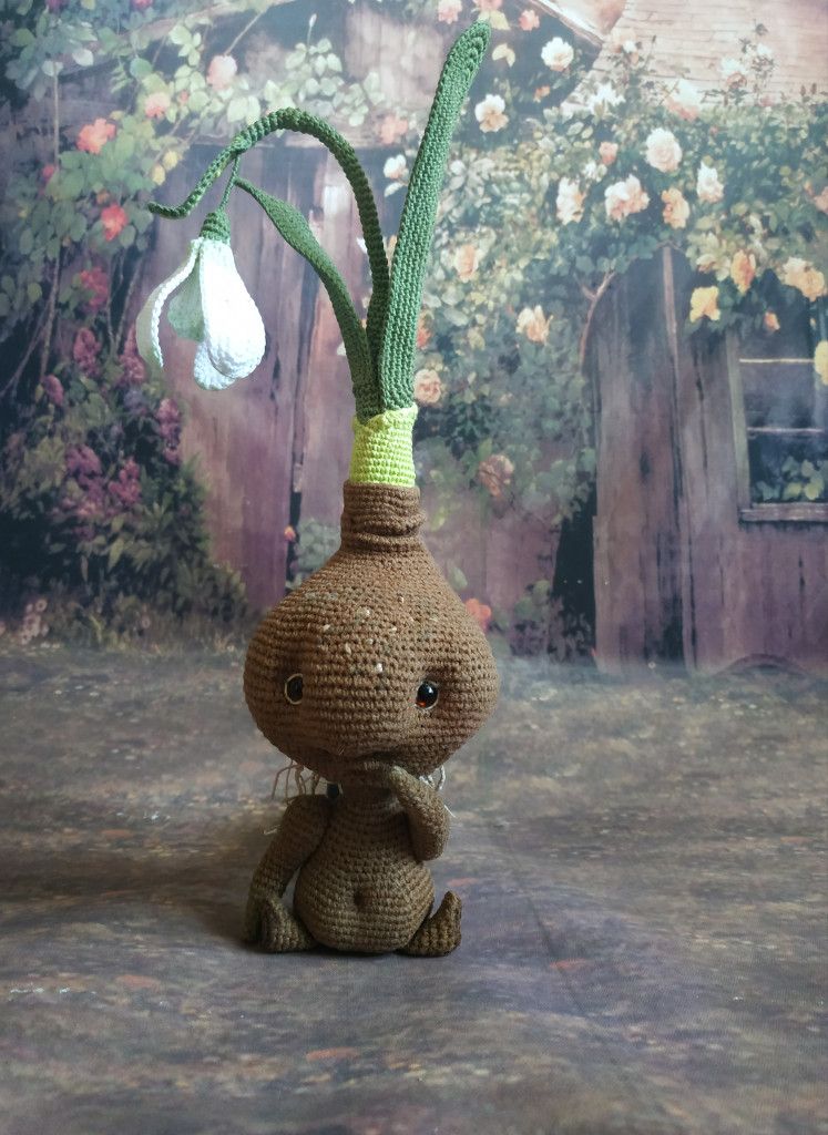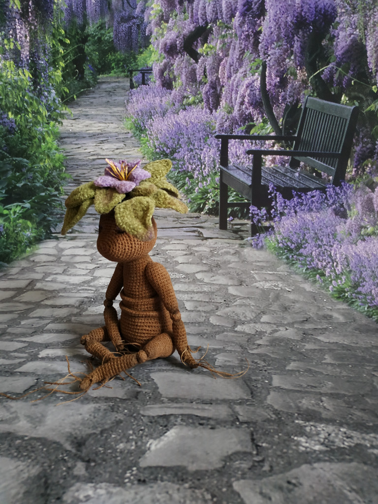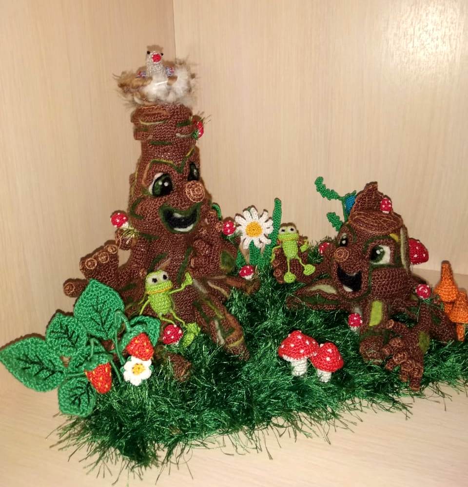 Еще один Представитель Лесного департамента рядо-пень Степка. Связан "Ирисом", крючек кловер 1. Глазки, ротик, прожилки мха- приваливание шерсти.Игрушка высотой 15 см.