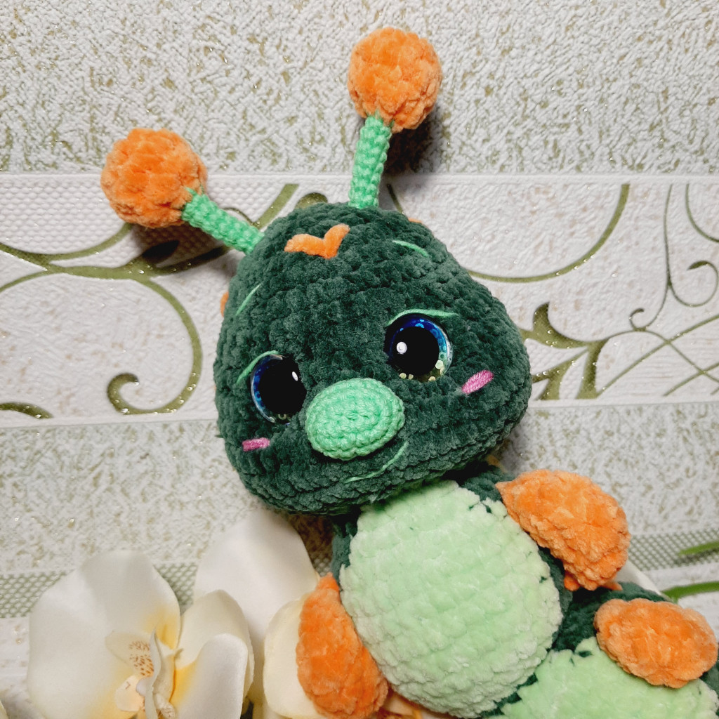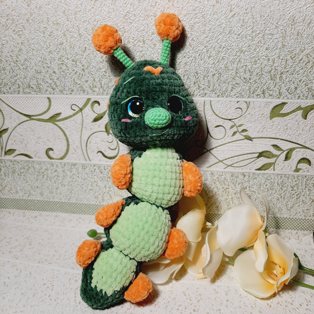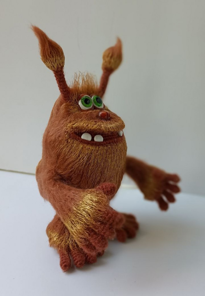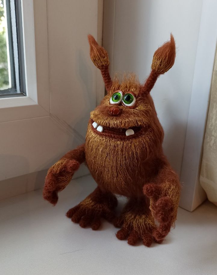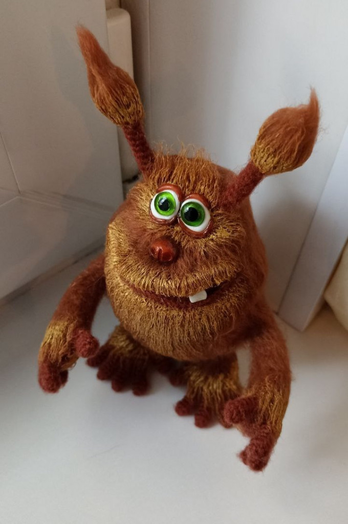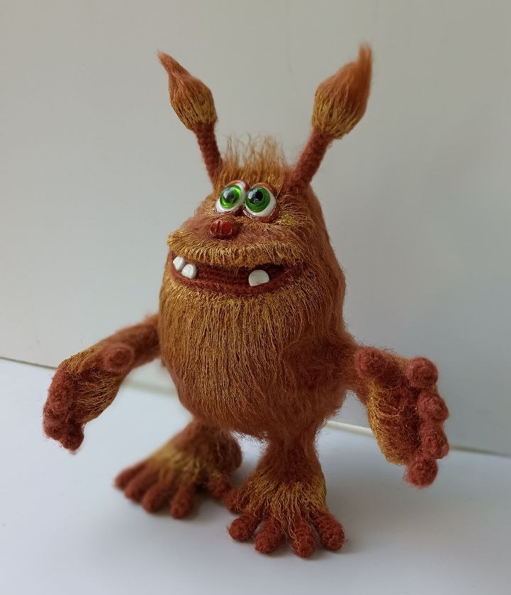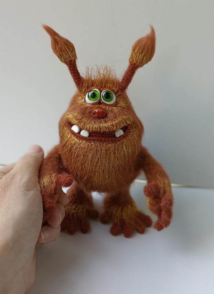 А этот персонаж был связан по готовой работе, найденной в интернете. Рост у него 8 см, а длина тела 15. Эта игрушечка тоже безопасна для маленьких деток. Безопасные глазки, детский акрил, холлофайбер.