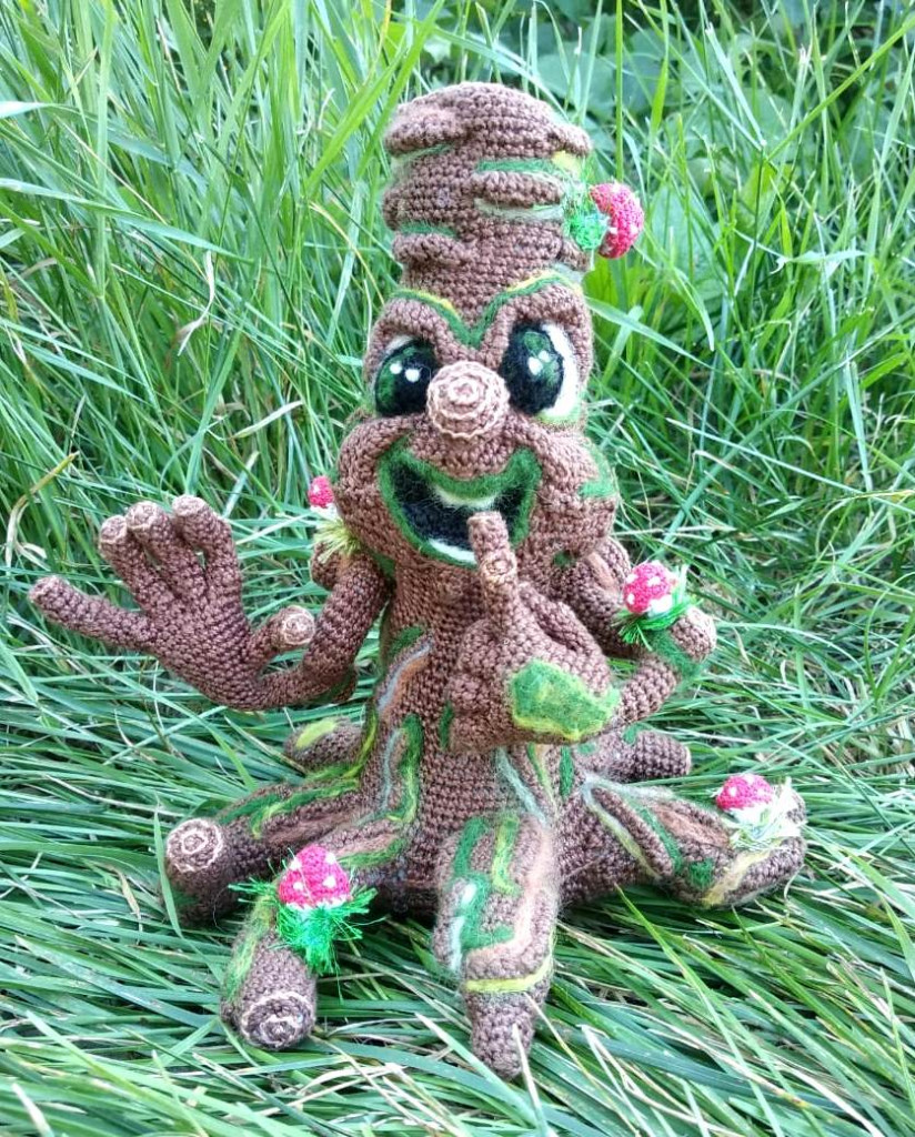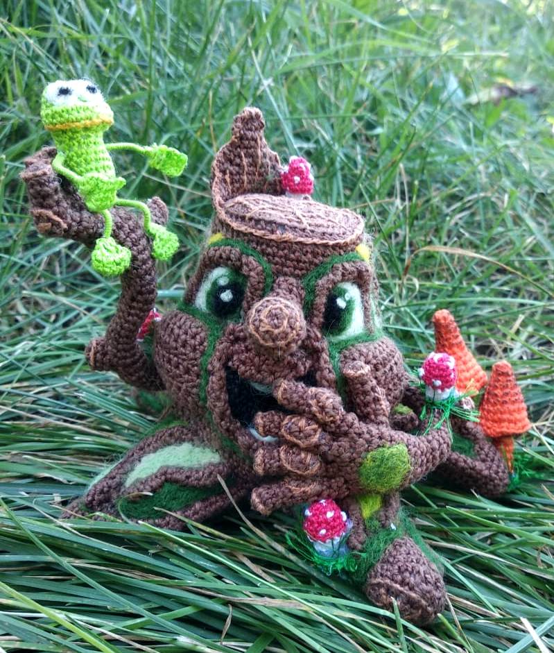 Один из моих любимчиков Представитель Лесного департамента капи-пень Федя. Связан "Ирисом", крючек кловер 1. Глазки, прожилки мха- приваливание шерсти.Игрушка высотой 26 см.