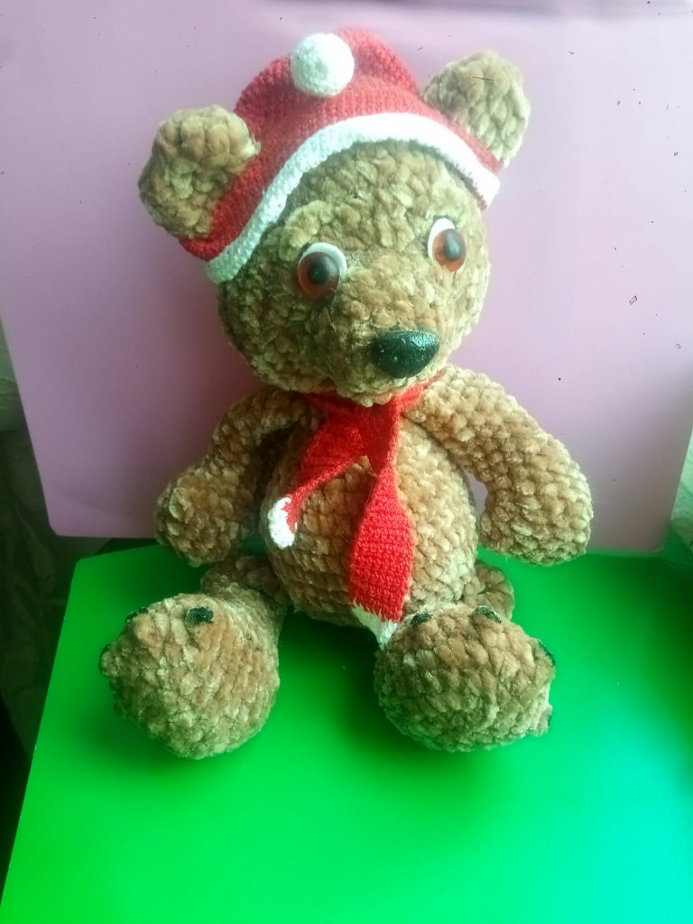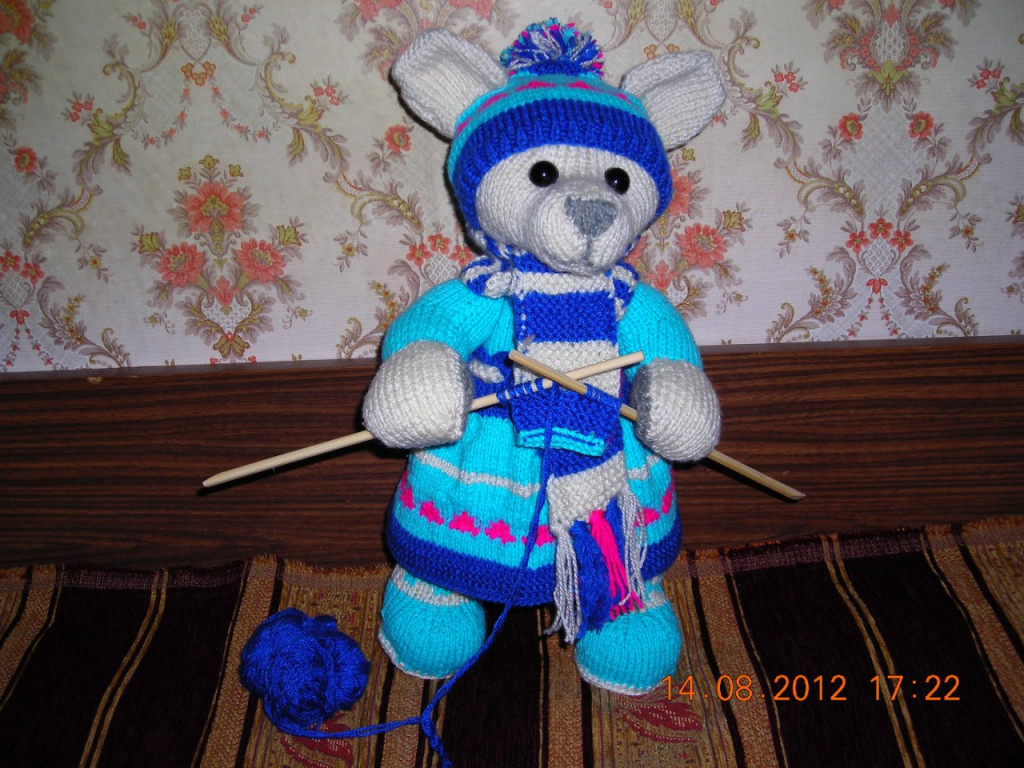 Мишка связан в он-лайне, я его одела в шапочку и шарфик...