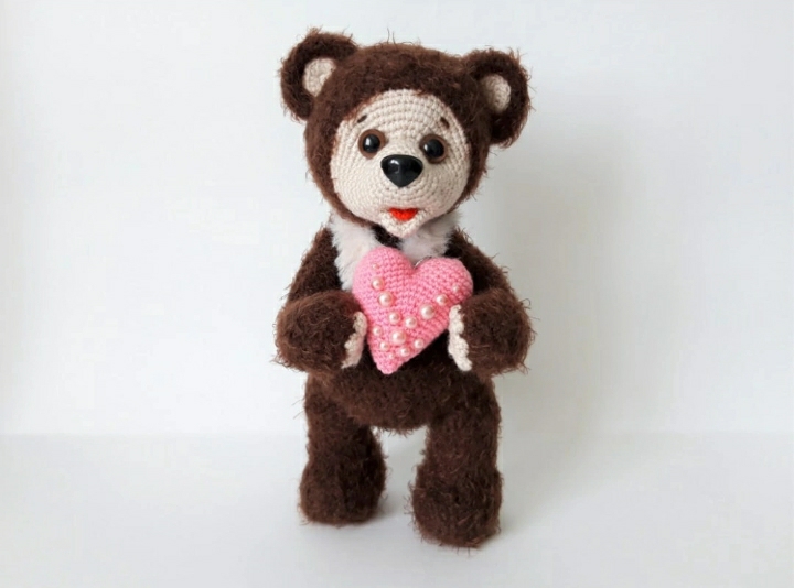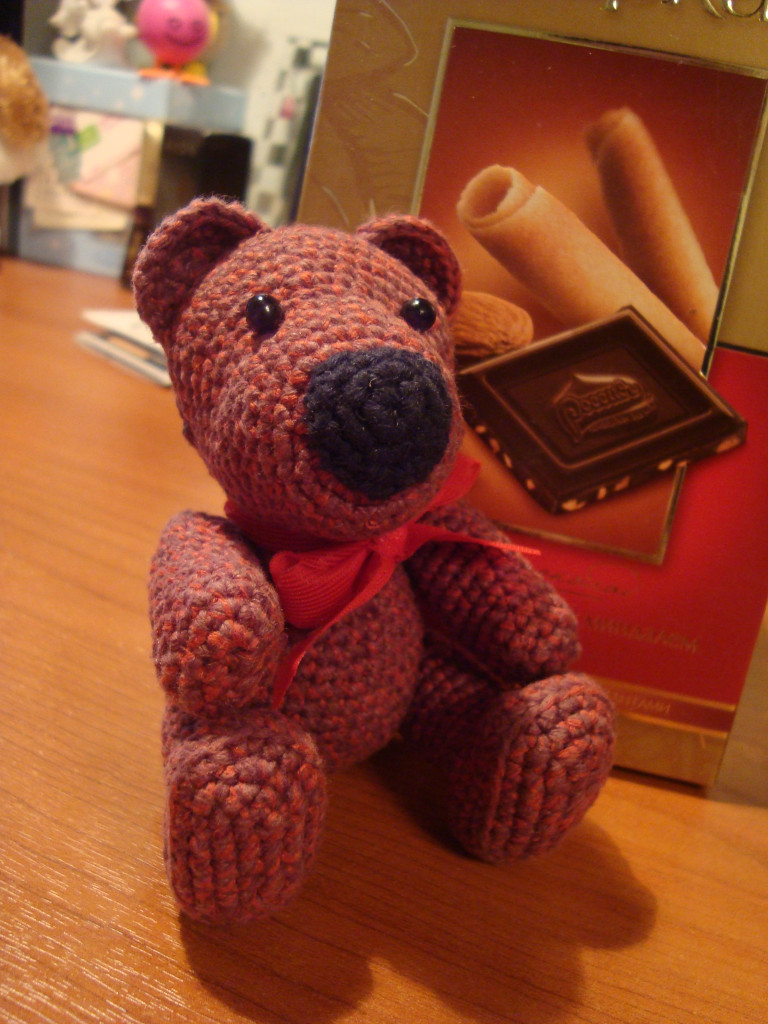У меня связался еще один мишка! Изначально мишка был зайкой по описанию Светланы Громовой "Зайка Валентинчик", но в процессе вязания зайкой быть отказался и стал мишкой. Кто я такая, что бы спорить, правда же? :toy: