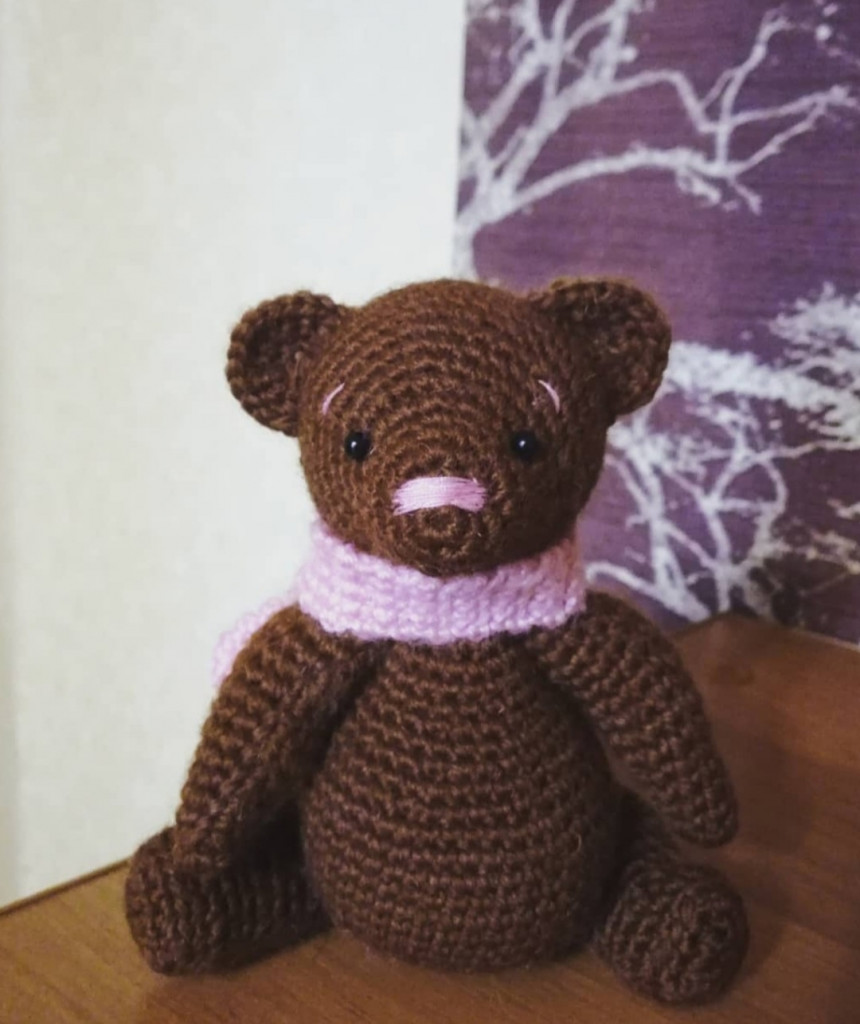 Маленький мишутка.Вязала по мастерклассу из ютуба.