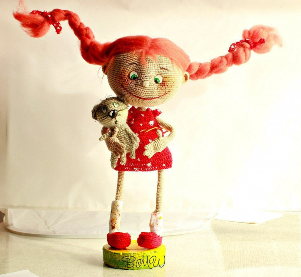 Девочка с котёнком по моему мк, в рамках конкурса вязание по картинке.
