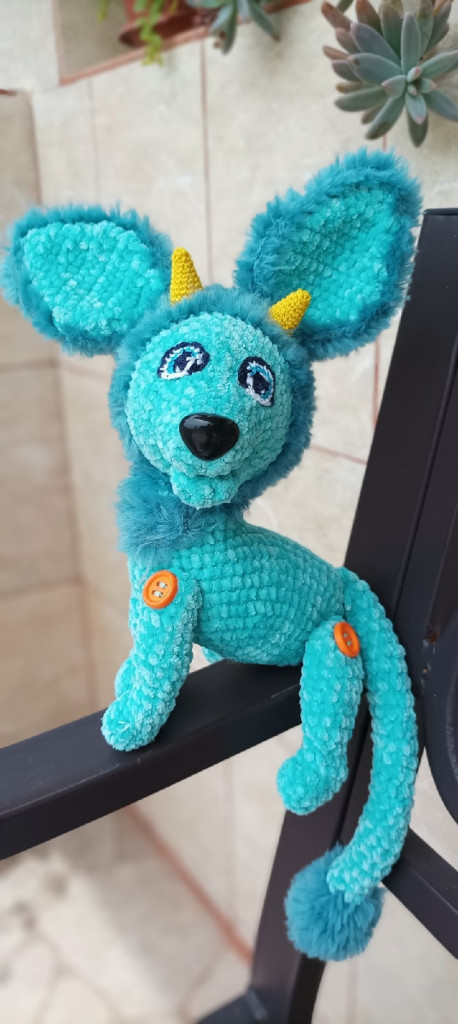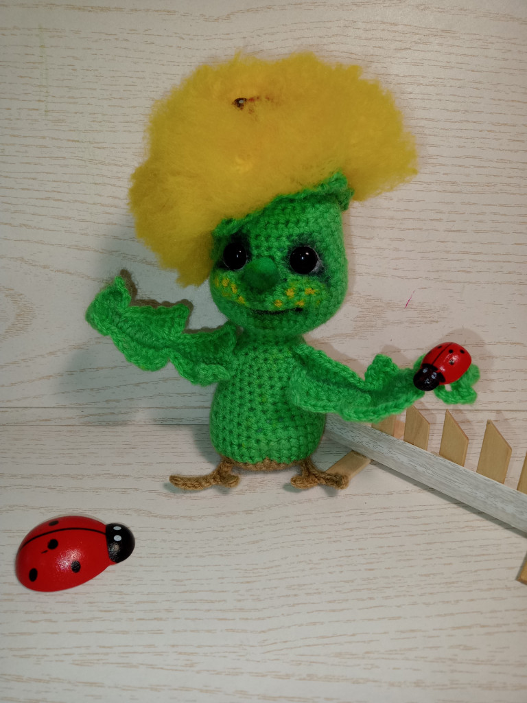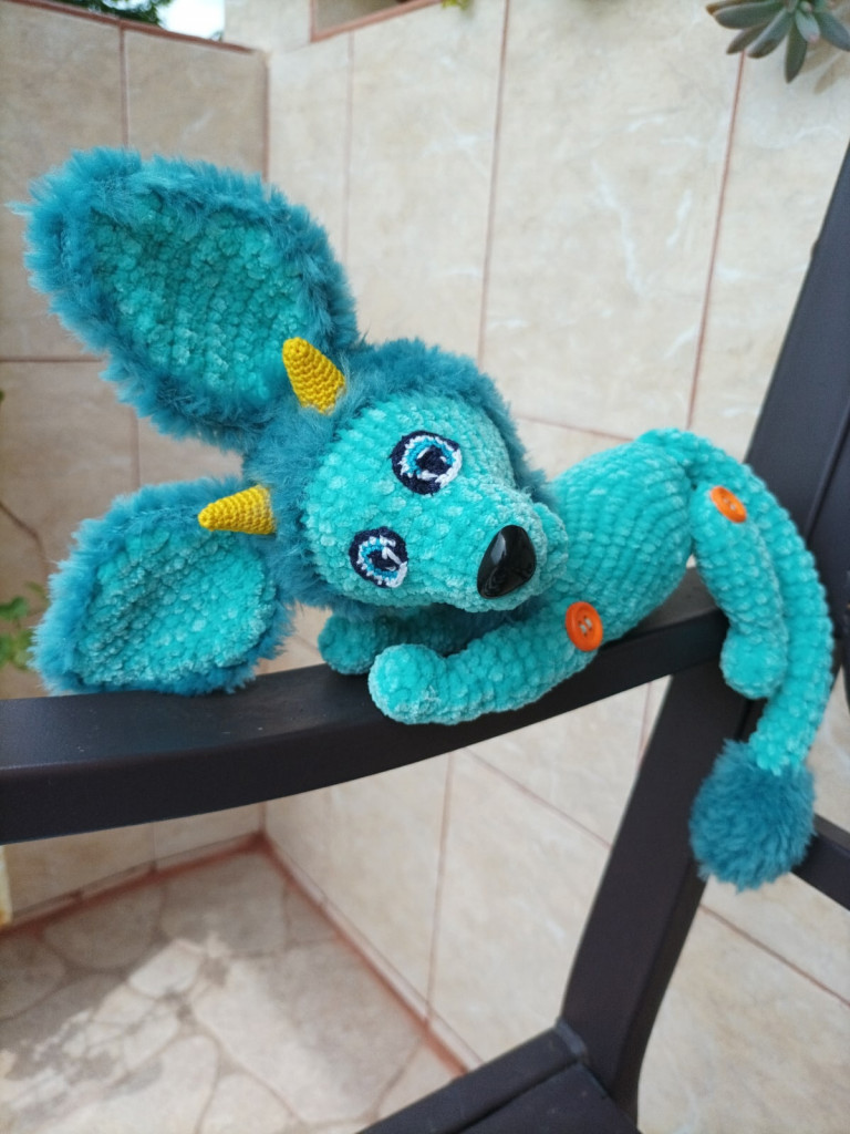 Дракон Чик. Малыш-дракон, встал на крыло, блестит чешуйками и скоро начнет огнем плеваться))) Длина тела 11 см, размах крыльев такой же. Пряжа Yarnart Camellia и шерстяная нитка 1800м/100гр. Появился в рамках тестирования мастер-класса Людмилы Тевиковой. Спасибо, Людмила, за доверие)