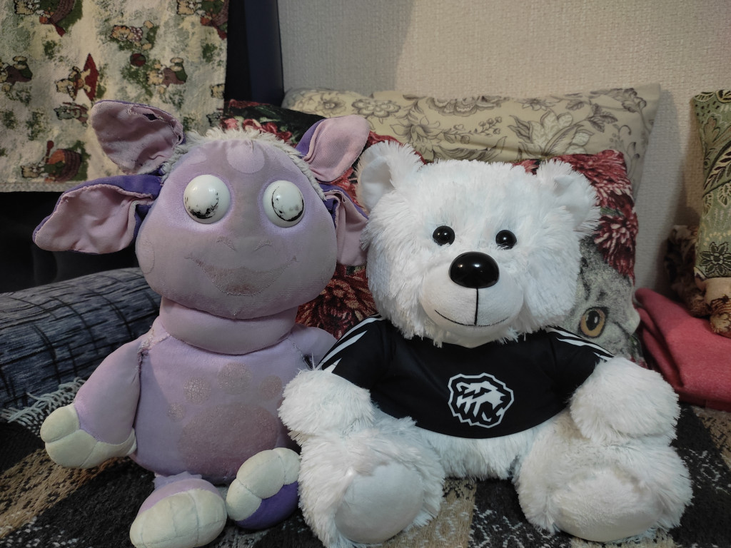 Вот он мой подарок, а рядом дочкины.(На проживание оставила). Хотя дочка тоже взрослая, а ей дарят разных плюшиков)