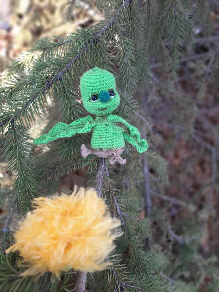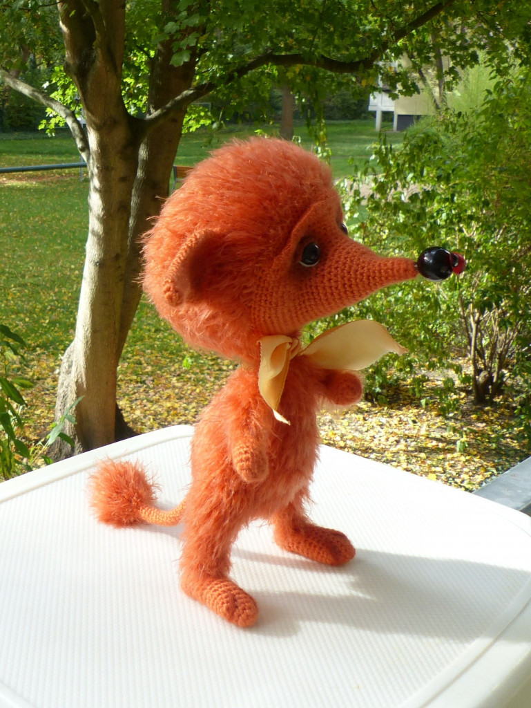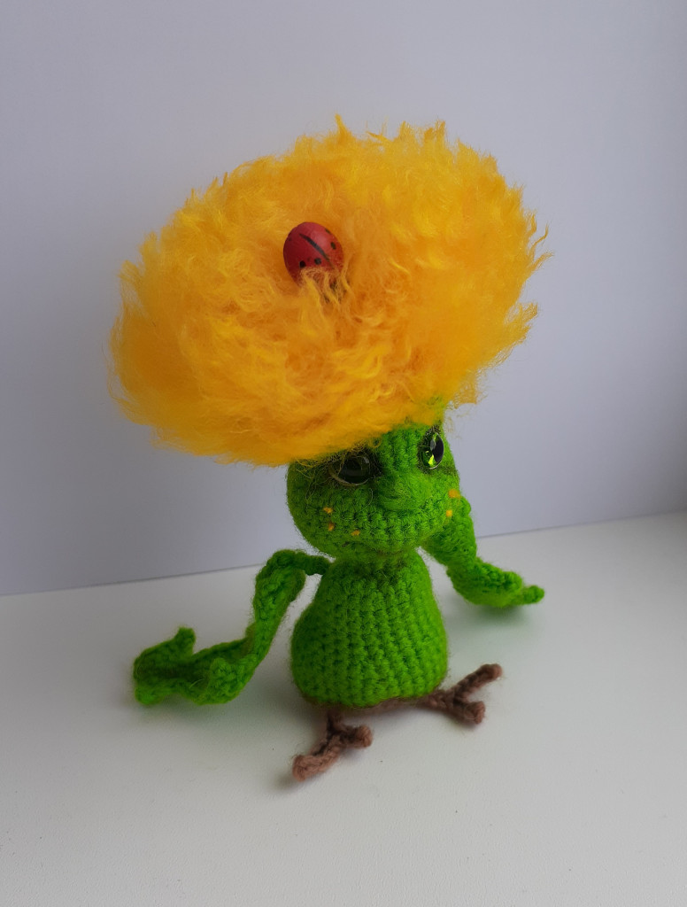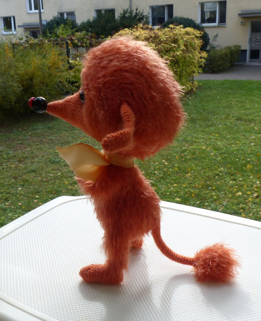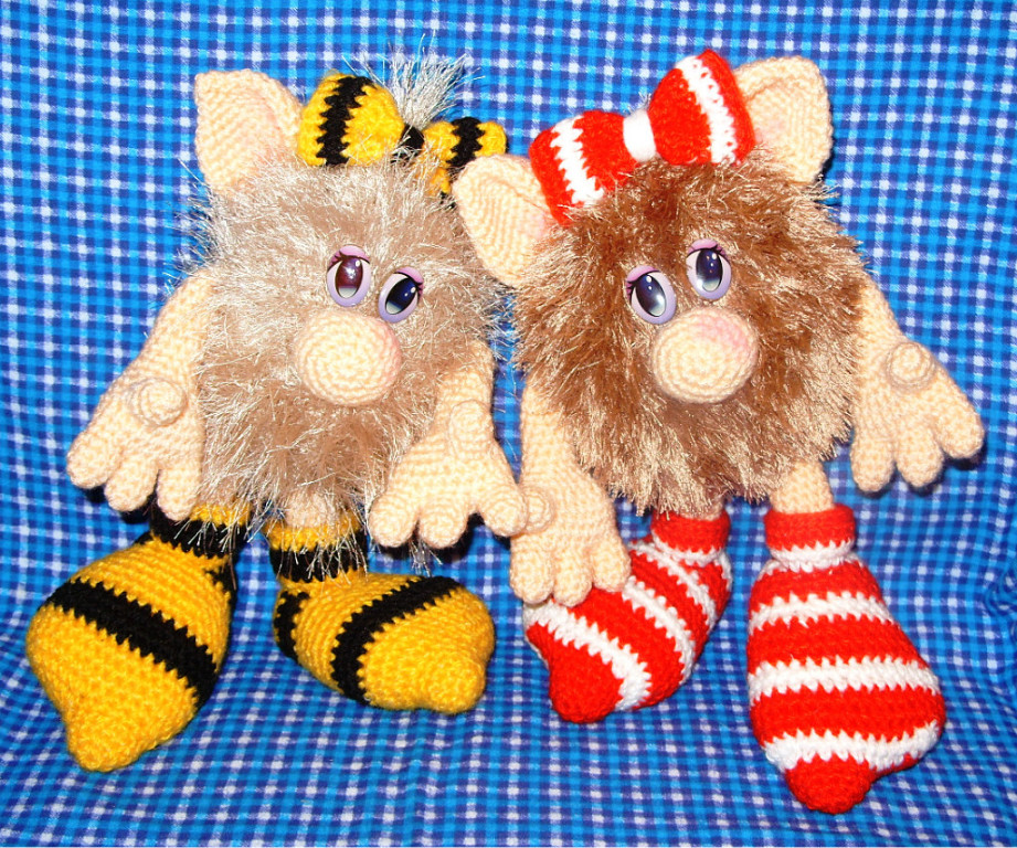 Чудушко размерчиком 20 см, связан из акриловой пряжи Scala Microfaser 100гр/240м две ниточки из четырёх. Меховая часть Effect Strickgarn Sarah - брала только пушистую ниточку и одну ниточку из четырёх коалы. Крючок 1,5 кловер амур.