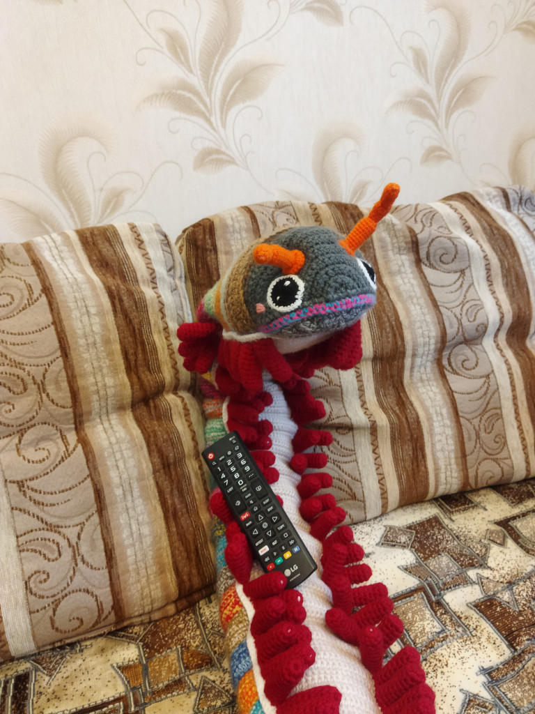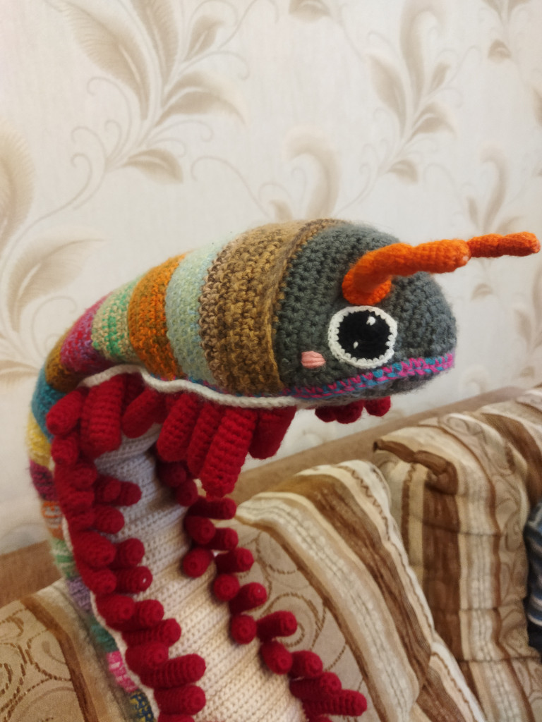 Кивсяк Шубуршун радужный. По МК @projectarian. Детская Новинка в два сложения. Крючок 4. 1,10 метра. 112 ног.