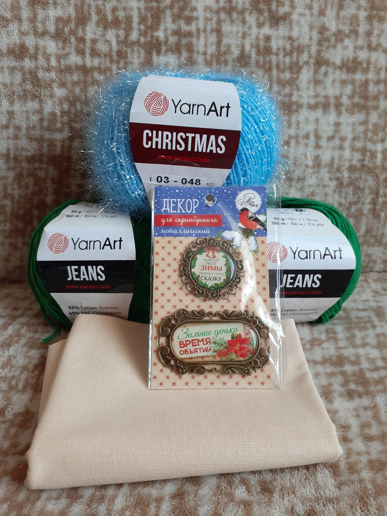 Привёз снеговичок ещё и кое что для рукоделия.Пряжу, ткань для тильди красивые бирочки