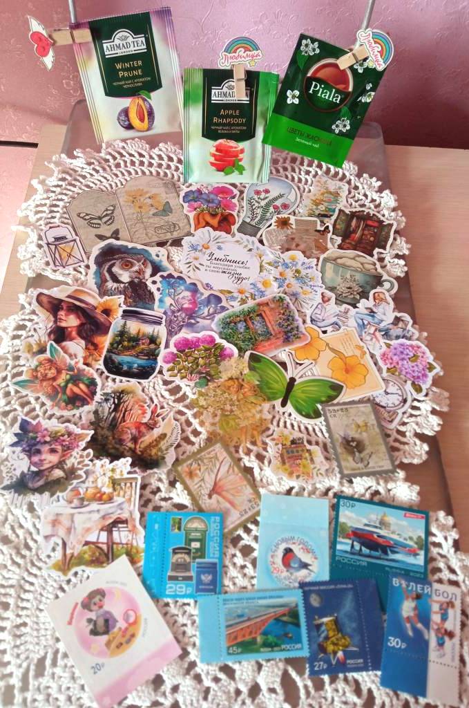 А так же множество высечек, наклеечек, марочеки, разные нужности для скрабунинга и пакетики с чаюшечкой