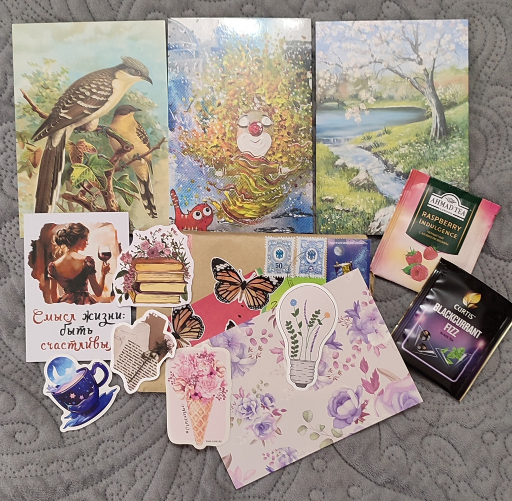 Ещё одна выигранная открытка пришла от Жанночки @nisana . Плюс подарочки - открытки и наклейки