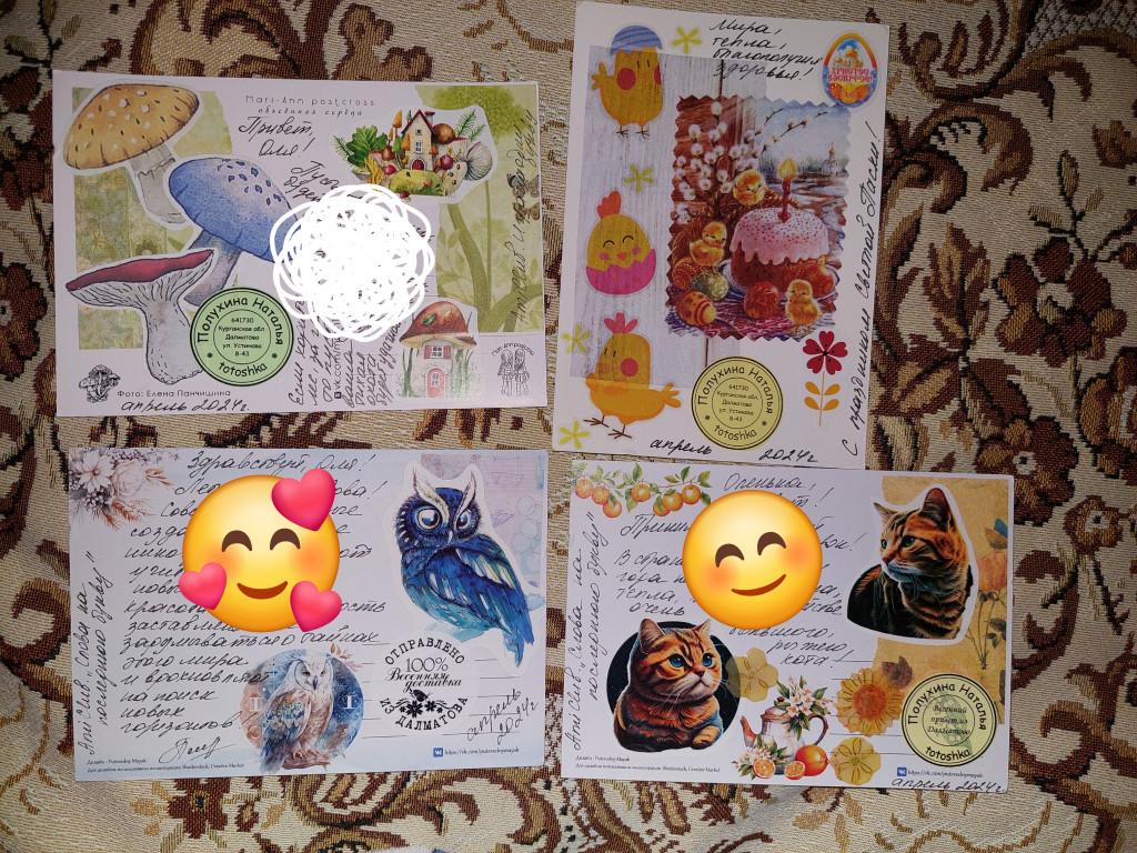 Меня одну, только открыточку подписать Кристине.lelyoka72 писал(а): ↑27 апр 2024 10:22Галя, значит внучек тоже записывать на обмен или только тебя одну?Galina_Konovalova писал(а): ↑27 апр 2024 07:13 @lelyoka72 Оля, меня тоже запиши, пожалуйста. Вы здесь все о доченьках пишите. А у меня ведь уже 3 внучки и 1 внук! И как раз все четверо будут у нас на праздники. Поэтому, я думаю, что с удовольствием подпишут вашим деткам приветики. Так что, пожалуйста, на мой адрес можно подписывать Кристине (мой самый главный посткроссер) или Ксюше. Девчонкам по 9 лет, им интересно получать, оформлять.
