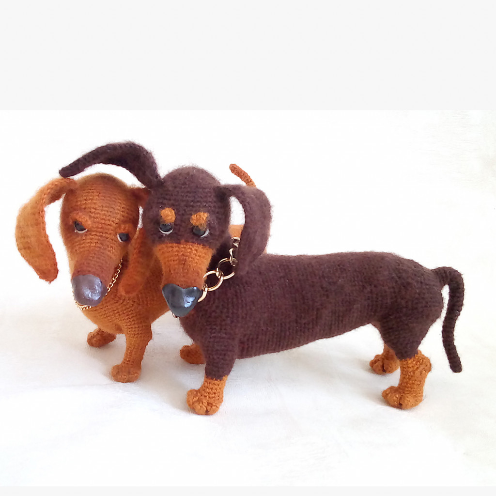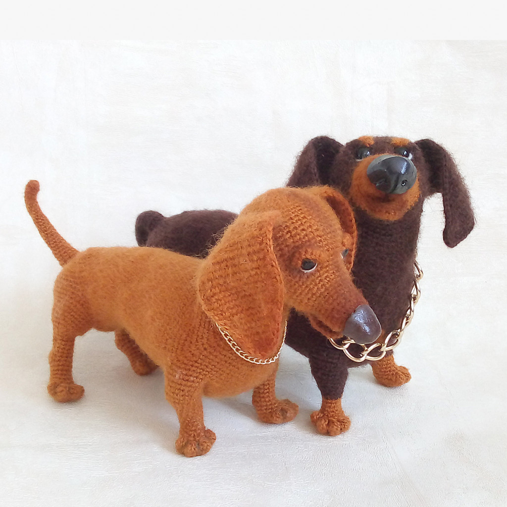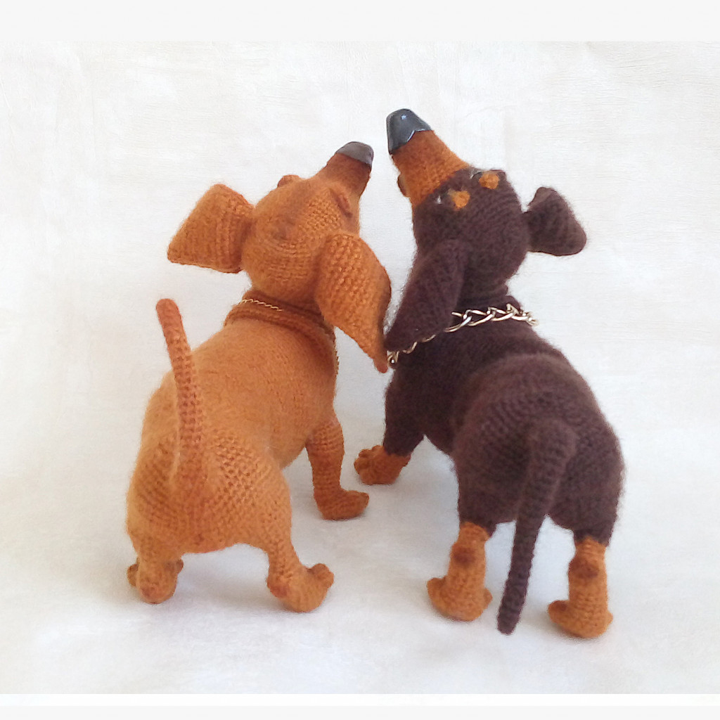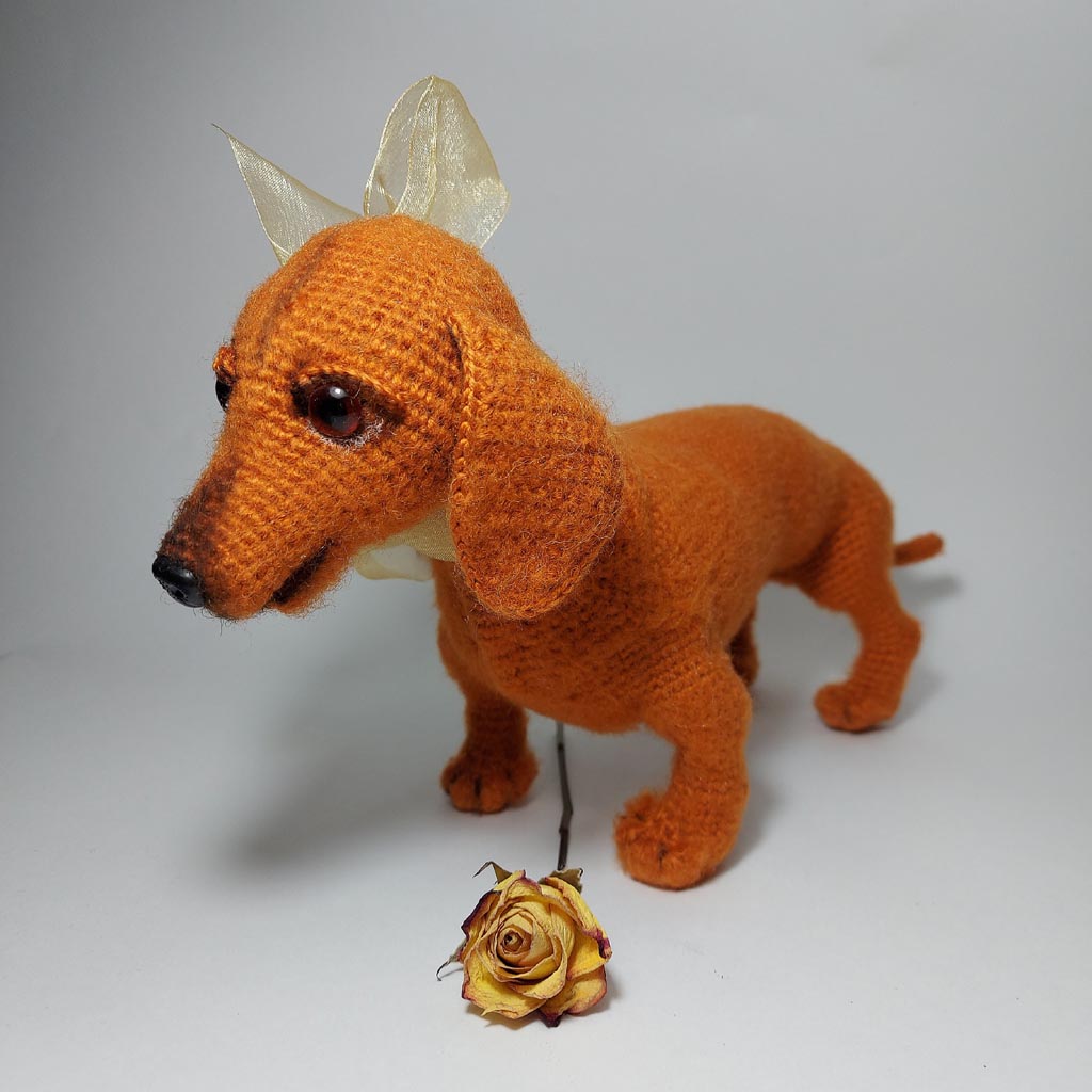 Такса по МК Наталии Загребиной вязалась из пряжи Бриллиант, вроде совсем не подходящей для игрушек. Но другой ниточки такого цвета не нашлось..