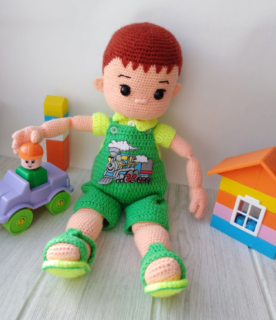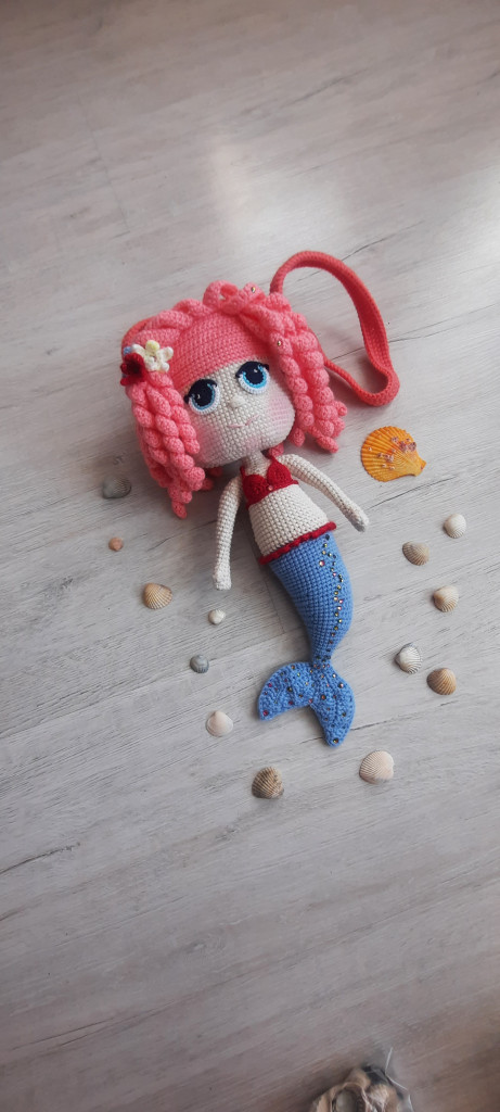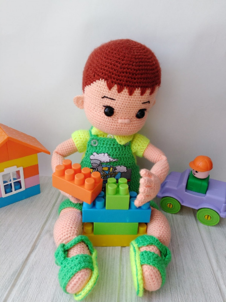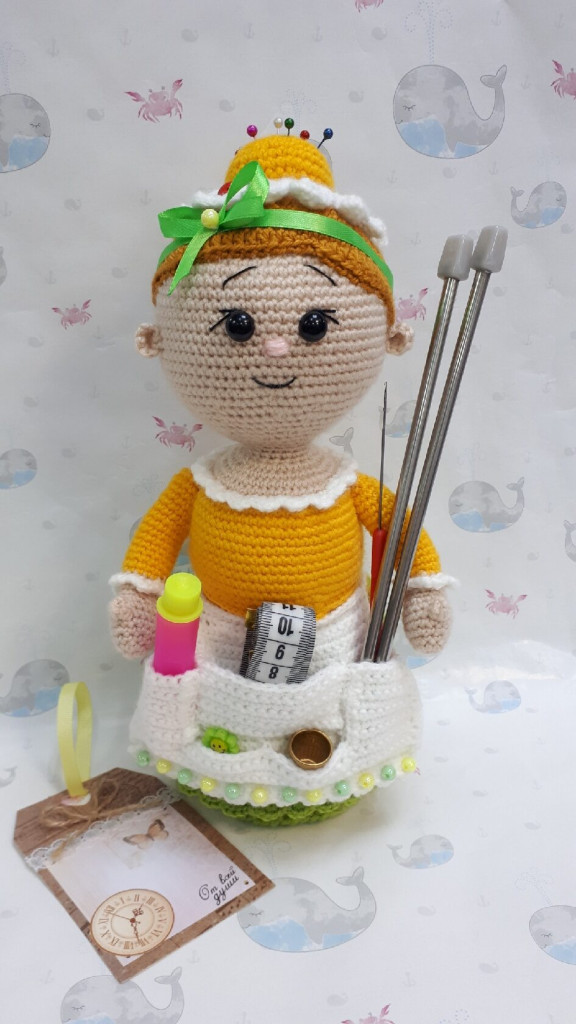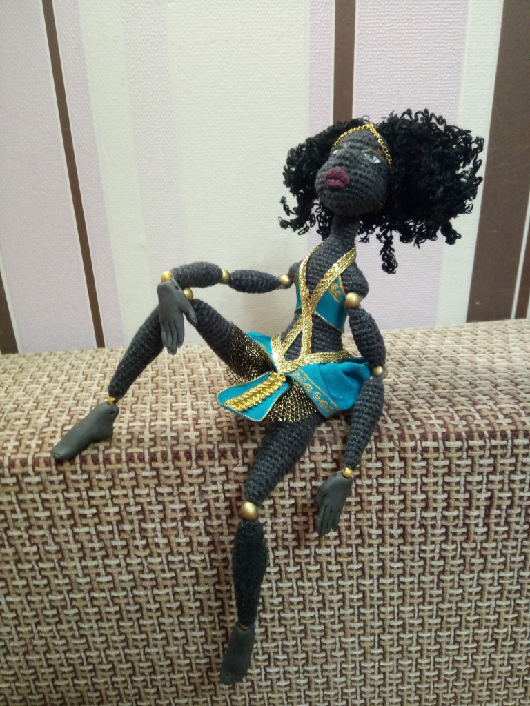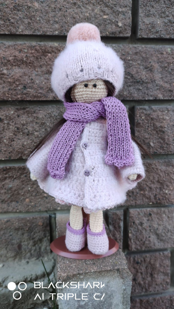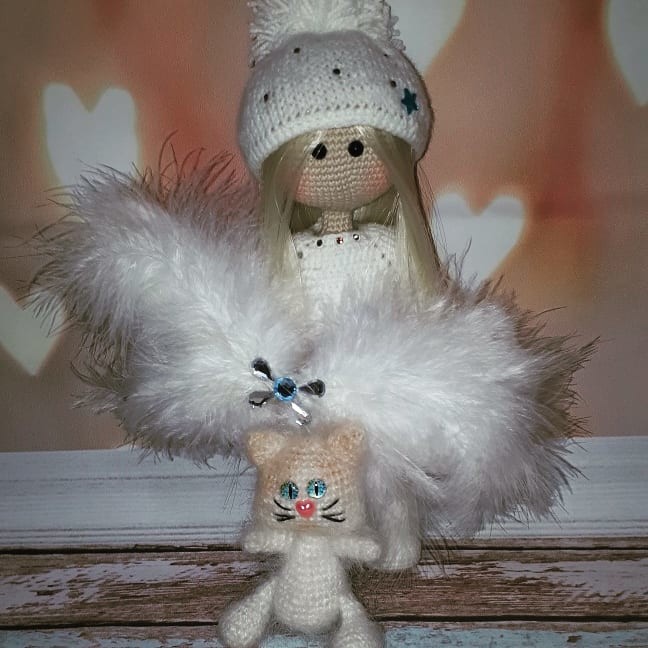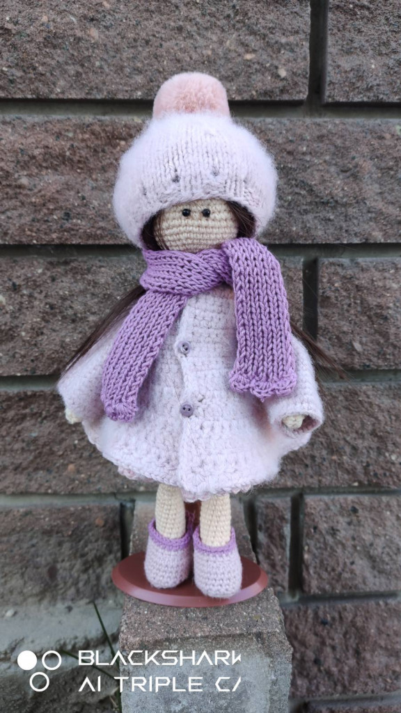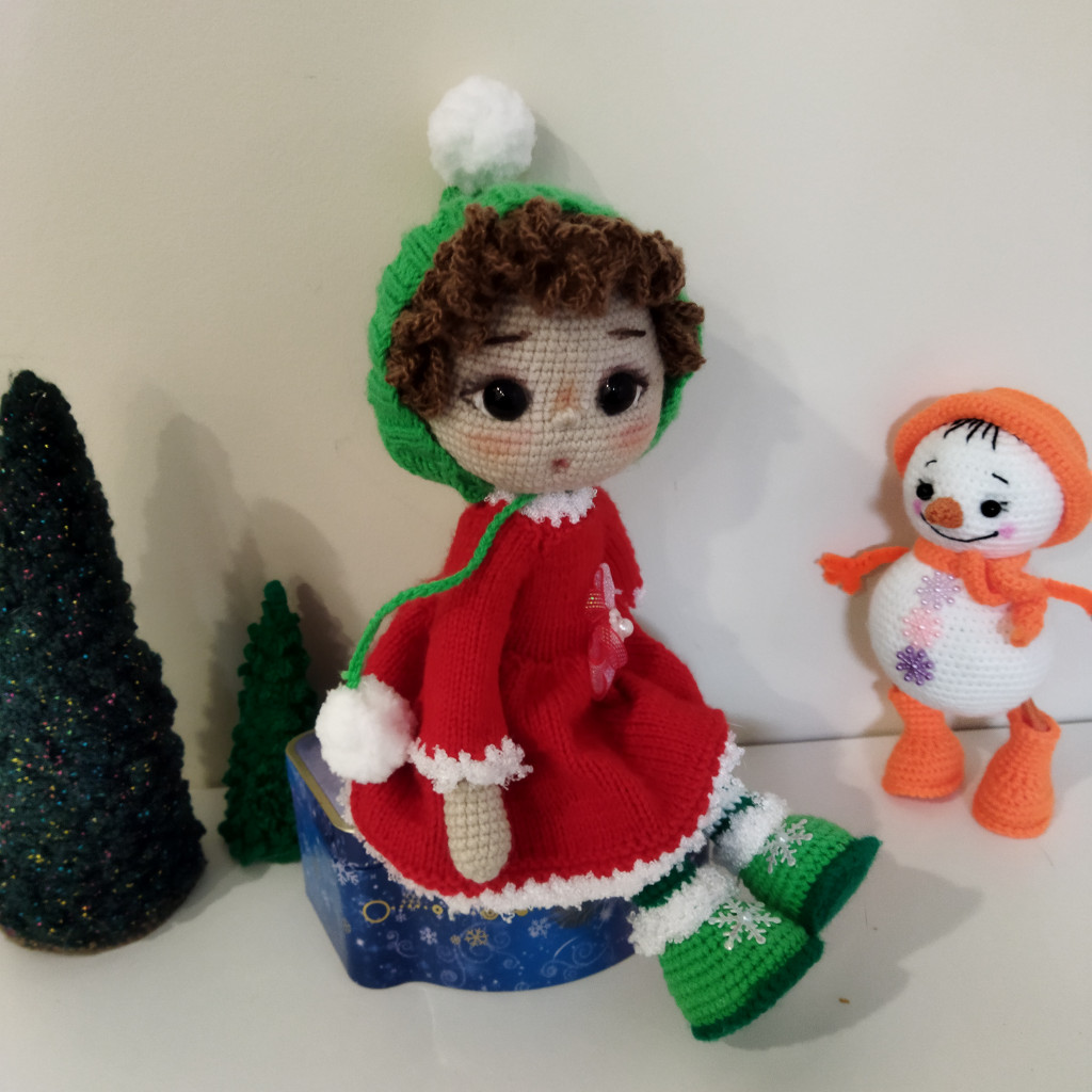 Это моя первая кукла, связана для мое дочери, которая любит переодевать кукол. Она связана по образам вальдорфских кукол крючком. Одежду можно снимать, волосы расчесывать и делать прически, очень мягкая и уютная девочка с пропорциями настоящего ребёнка, ростом 40 см, хорошо сидит, но стоит с опорой. Моей дочери она очень понравилась, а это для меня главное...