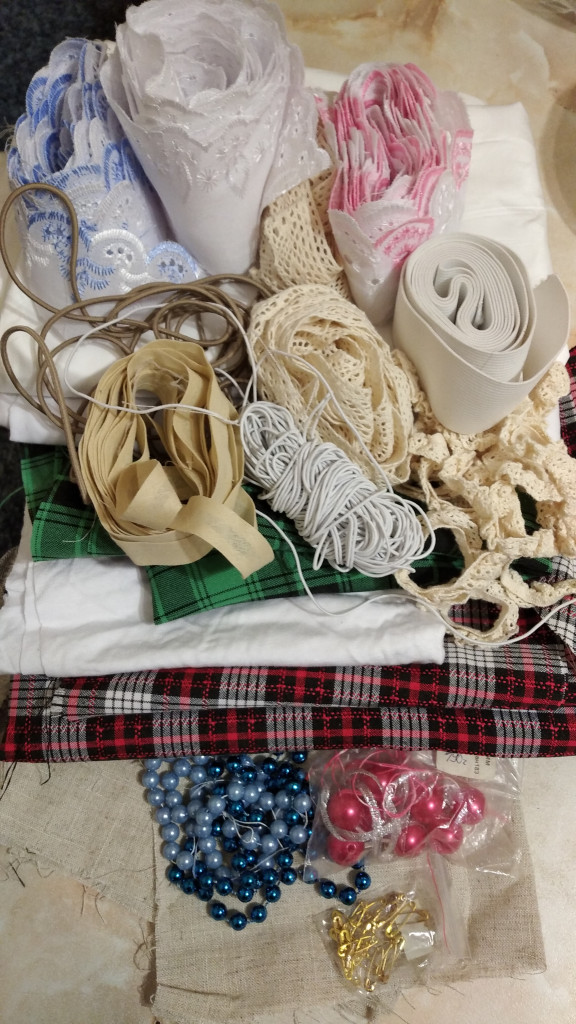 :bye3: ткани, шитье, резинка шляпная, резинка широкая, бязь, сатин, брала для пошива одежды для бабы Яги.