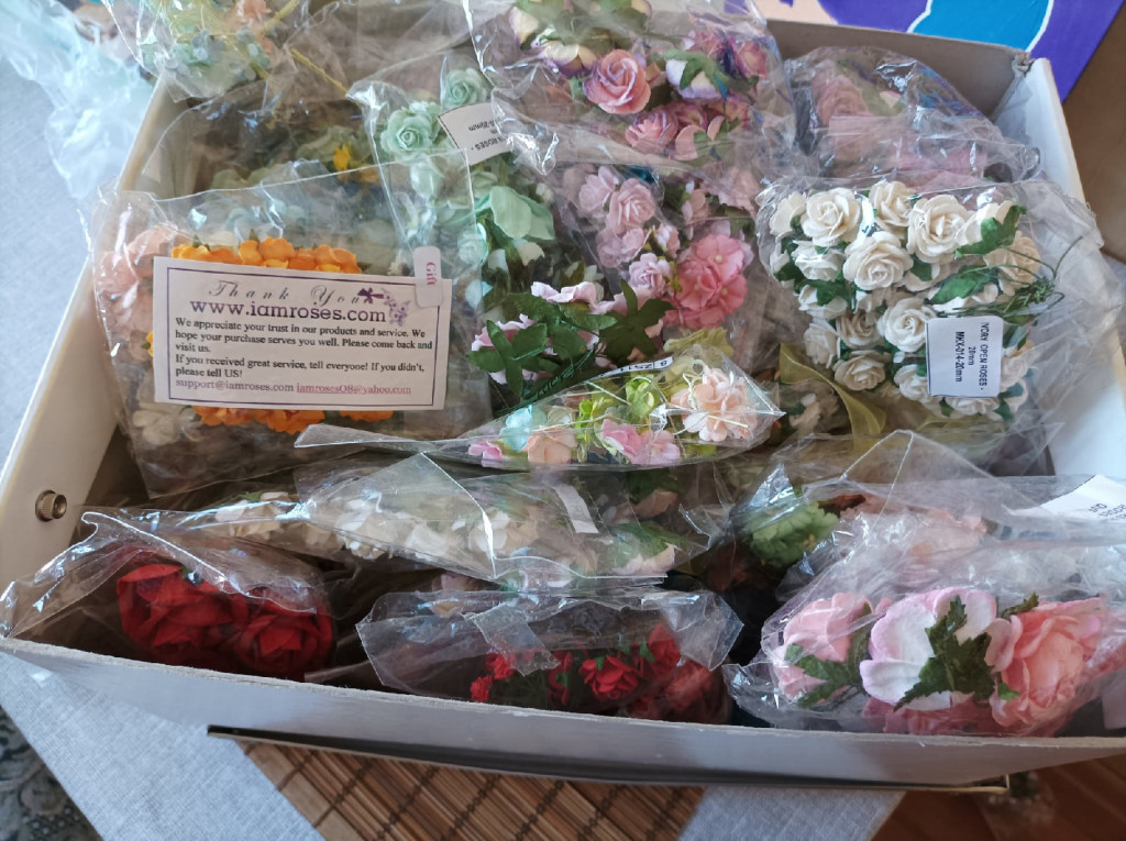 лот 8, цветы бумажные, пр-во Тайвань, коробка ИКЕА формата А4, 800 руб