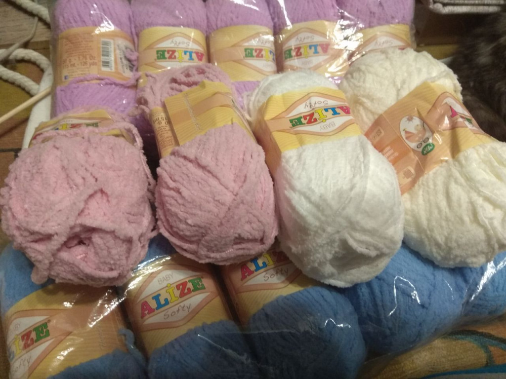 Девочки, добрый день! продам кучу Ализе софти белый сливочный 2 цвета розового голубой оранжевый и оранжево желтый всех точно по упаковке белого и сливочного побольше. отдам по 40 рублей за моток пересылка за ваш счет