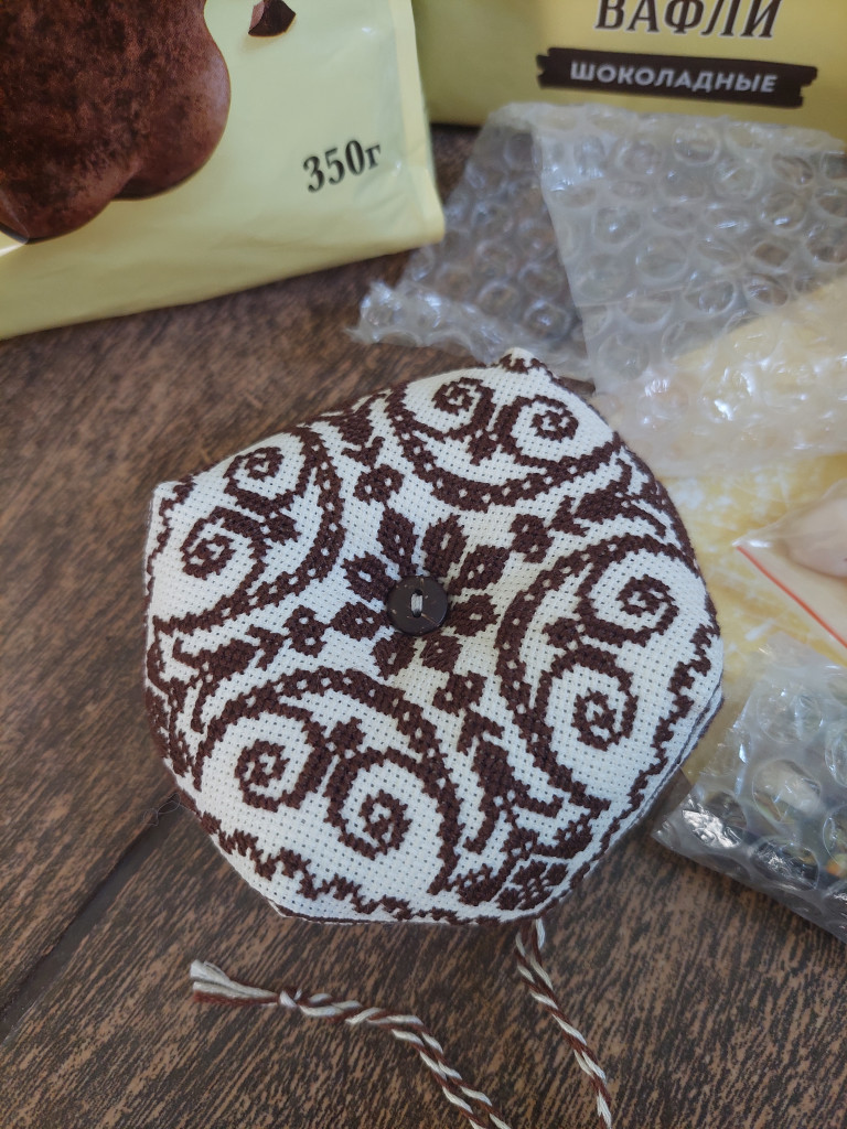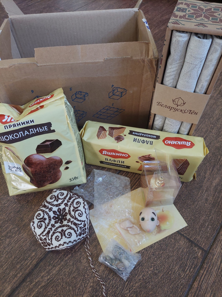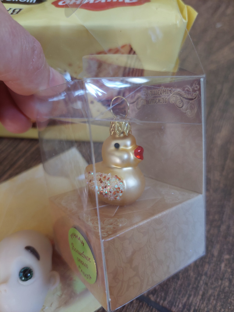 Во-вторых, давно смотрела на мини-елочные игрушки и они у меня в сохранённых на Вайлдбериз и тут опа-на! Утёнок!!!! В-третьих, давно хотела себе бискорню, но в магазинах мне не нравились, а у самой вышить руки не доходили :-))) теперь можно не дёргаться, бимкорню у меня уже есть!!!! Да ещё и вышитое крестиком!!! За сладости вообще отдельное спасибо!!! Я только и слышу от всех фирму Яшкино, то вафли, то пряники, то печеньки :-)))) теперь объемся:-))))