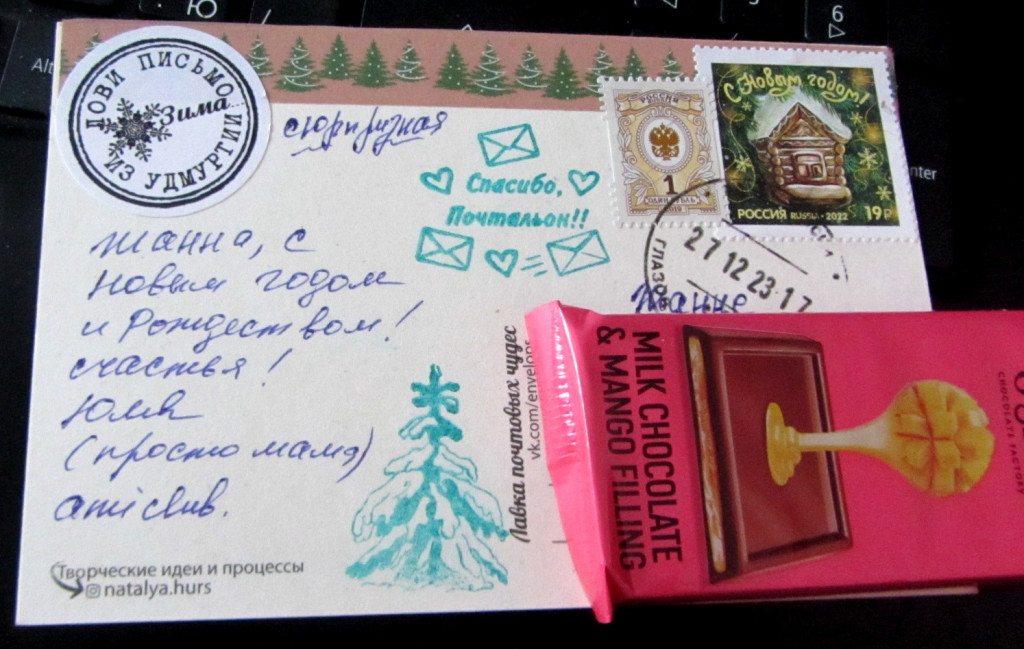 Это было так неожиданно и так приятно!! Словно в детство окунулась, когда мы получали от друзей и родственников открытки к праздникам!