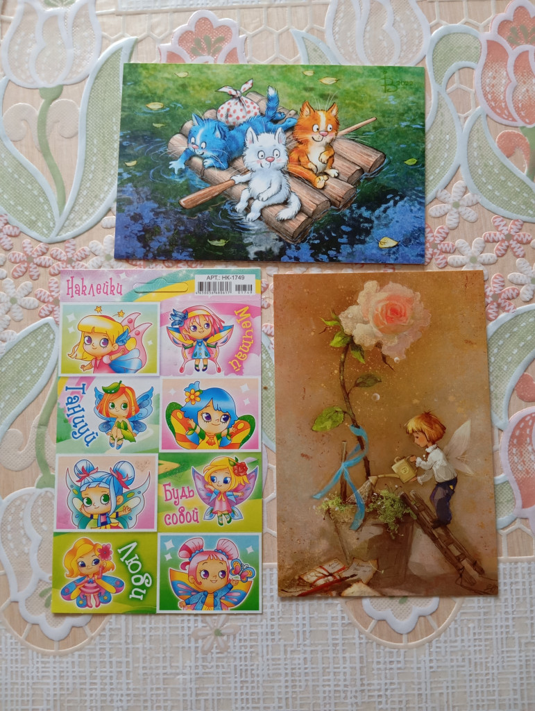 Доброе утро! Получила конвертик от Оли @lelyoka72 открыточки с лотерейки, сюрпризные, наклеечки, красивый листочек. Спасибо большое, дорогая!!! :bye_friend: